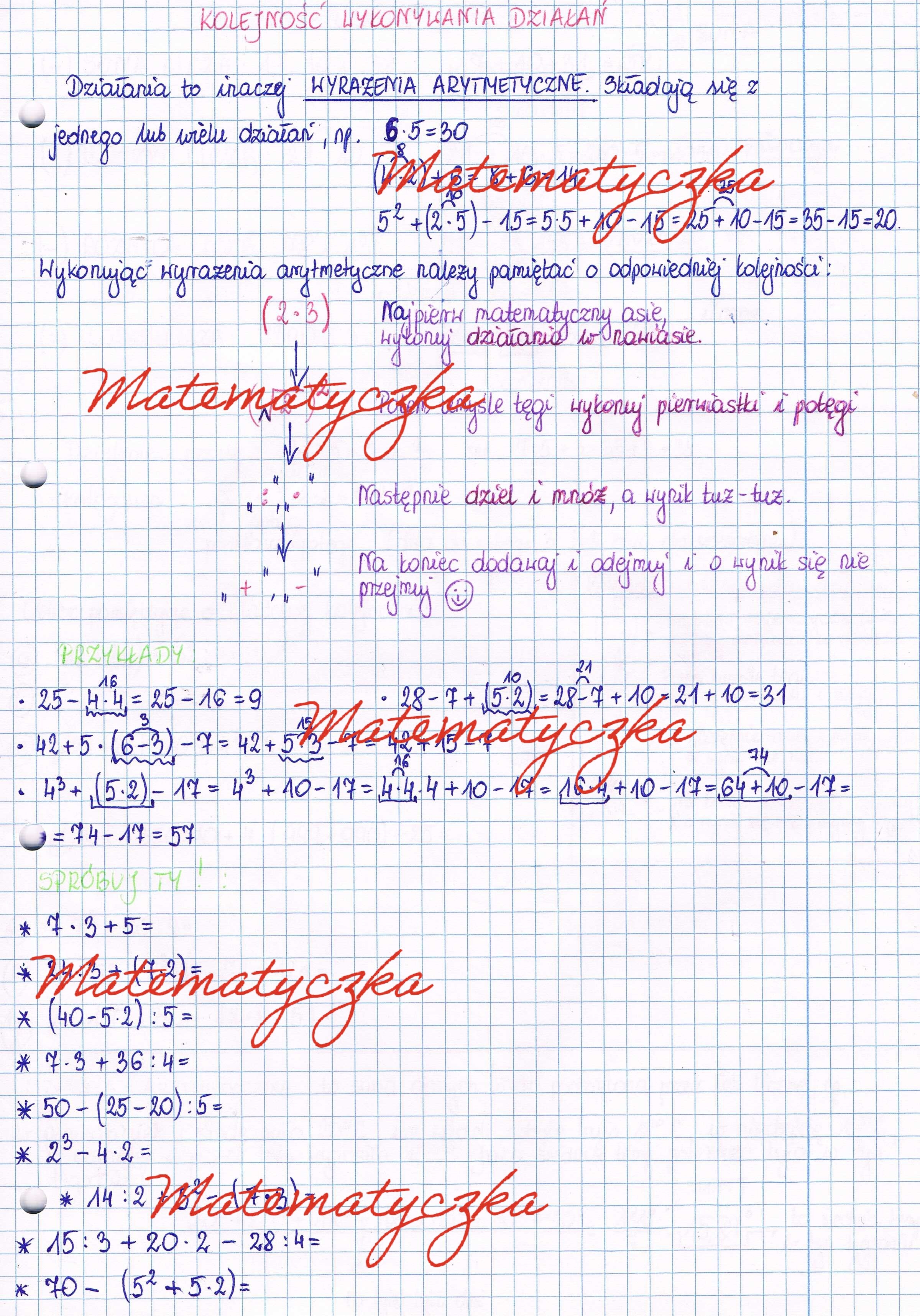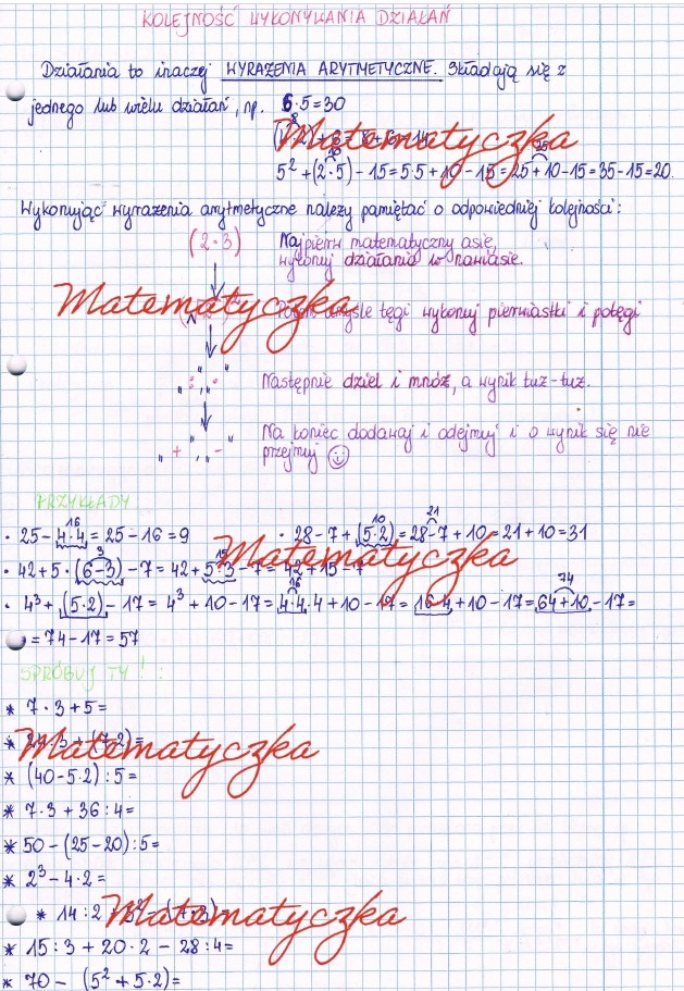Materiał idealny jako wprowadzenie do wyrażeń arytmetycznych oraz kolejności wykonywania działań.