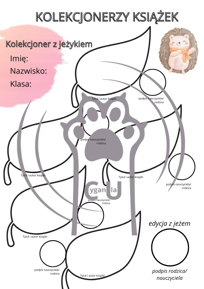 Zestaw zawiera sześć kart czytelniczych w ciekawych i przyjaznych edycjach ze zwierzątkami. Na każdej karcie znajduje się pięć miejsc na książki, które po przeczytaniu dzieci wpisują w przygotowane okienka, albo rysują obrazki w przygotowane miejsca. Karty przydadzą się zarówno rodzicom, nauczycielom bibliotekarzom, nauczycielom edukacji wczesnoszkolnej oraz na zajęciach rewalidacji.