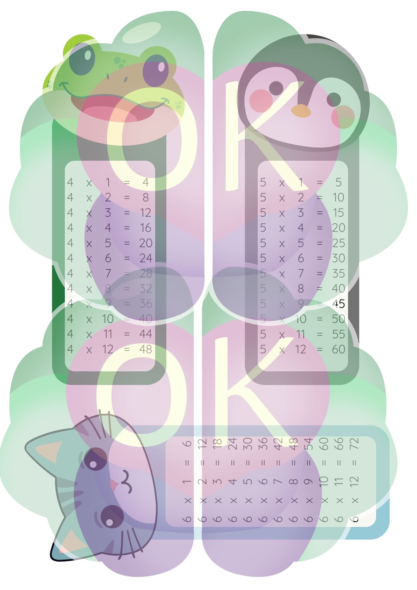 📘 Co zawiera materiał? ✔ Zakładki z tabliczką mnożenia (1–10) – każda zakładka przedstawia jedną liczbę – mnożenie do 12 – kolorowe, urocze motywy zwierząt, które przyciągają uwagę dzieci – idealne do książek, zeszytów i piórników ✔ Tabliczka mnożenia na kartkach A4 – każda liczba od 1 do 10 na osobnej stronie – czytelny układ, przyjazny dla dzieci – doskonałe do powieszenia w klasie lub nauki w domu 👩‍🏫 Jak można wykorzystać materiał? jako codzienną pomoc na lekcji matematyki jako zakładkę motywacyjną dla ucznia do pracy indywidualnej i powtórek jako dekorację sali matematycznej do nauki w domu (szybka ściąga w zeszycie 📖)