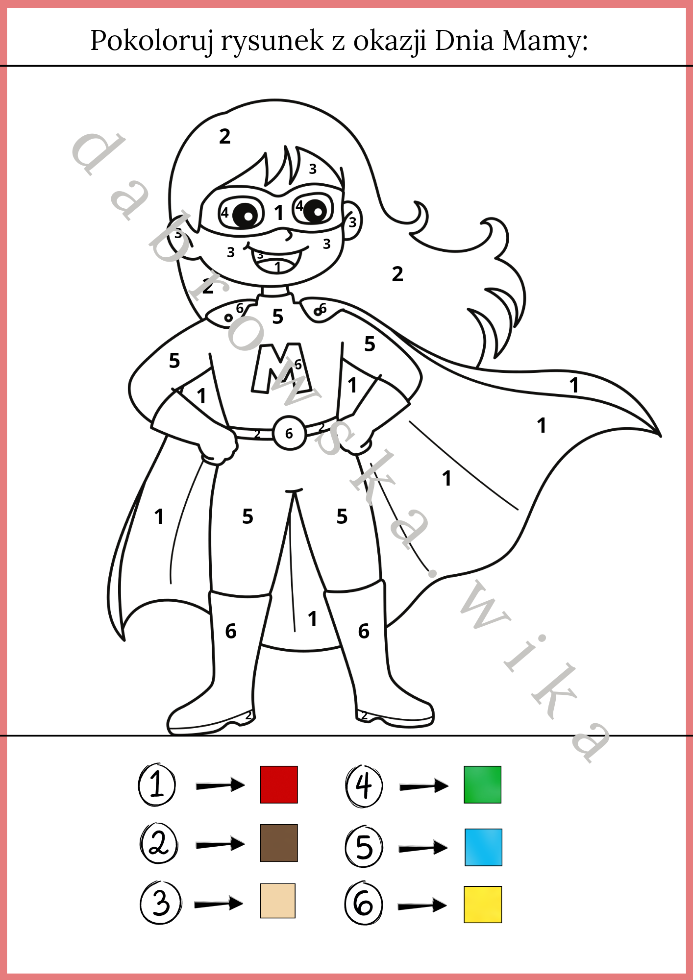 Kolorowanie to coś, co lubi większość dzieci. Taki materiał fajnie urozmaici zajęcia w szkole czy przedszkolu, jak również świetnie sprawdzi się do wykorzystania w domu z tej okazji. Dodatkowo pomalowana kolorowanka może być fajnym prezentem dla mamy.