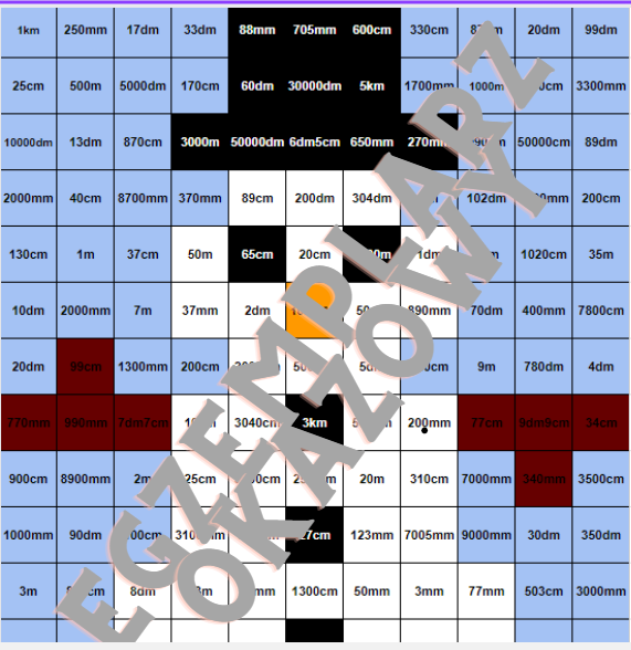 Kolorowanka kodowanka - jednostki długości (bez ułamków) bałwanek