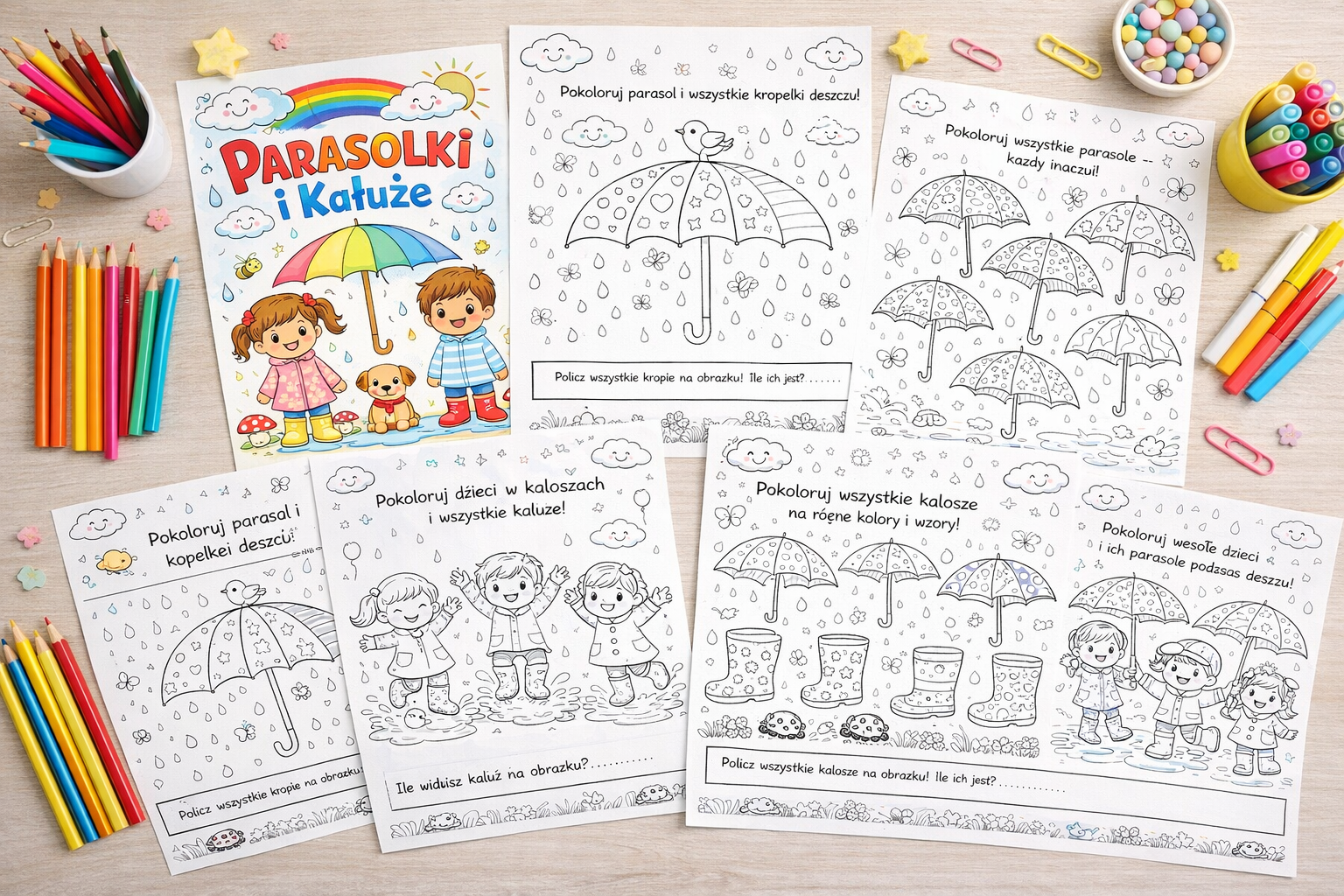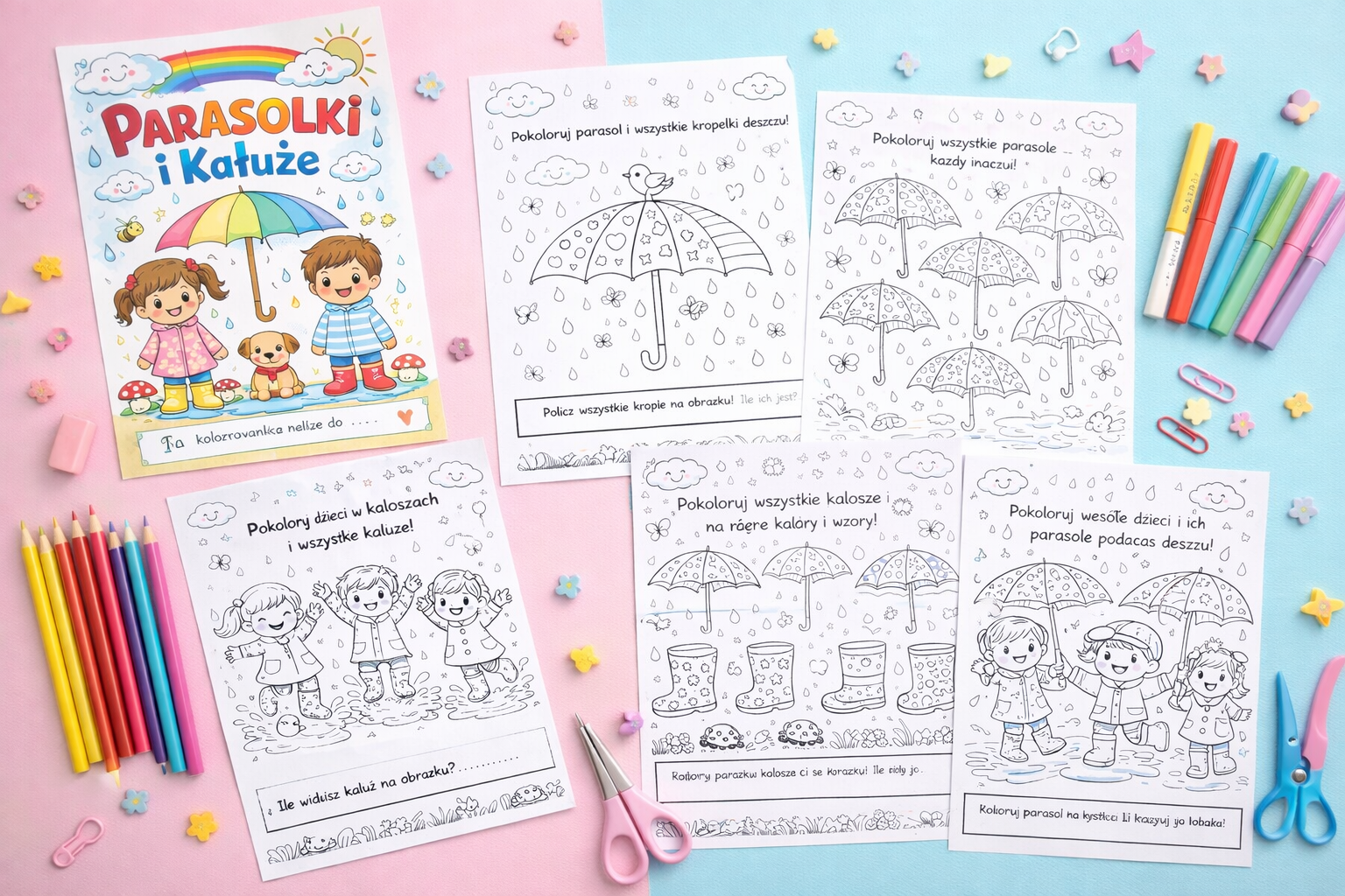 #kolorowanka #dlaDzieci #kreatywność #edukacja #parasole #deszcz #kalosze #przedszkole #zabawa #motoryka #drukowanki #koloruję #wDomu #dzieciaki #rozwójDziecka #cyfrowyProdukt