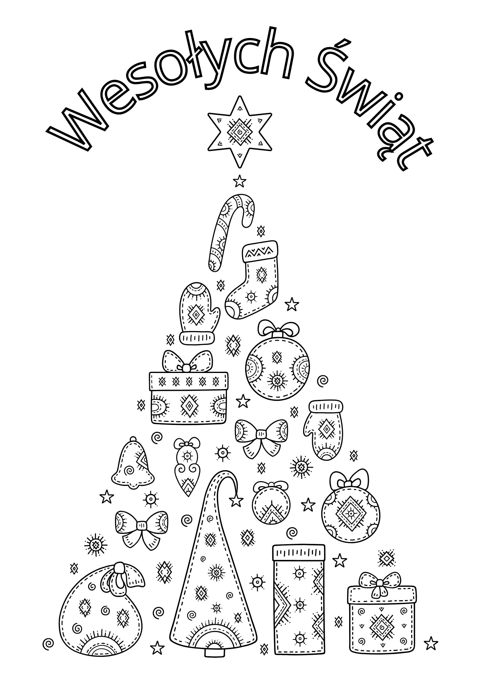 Kolorowanka "Wesołych Świąt" - kreatywna choinka.