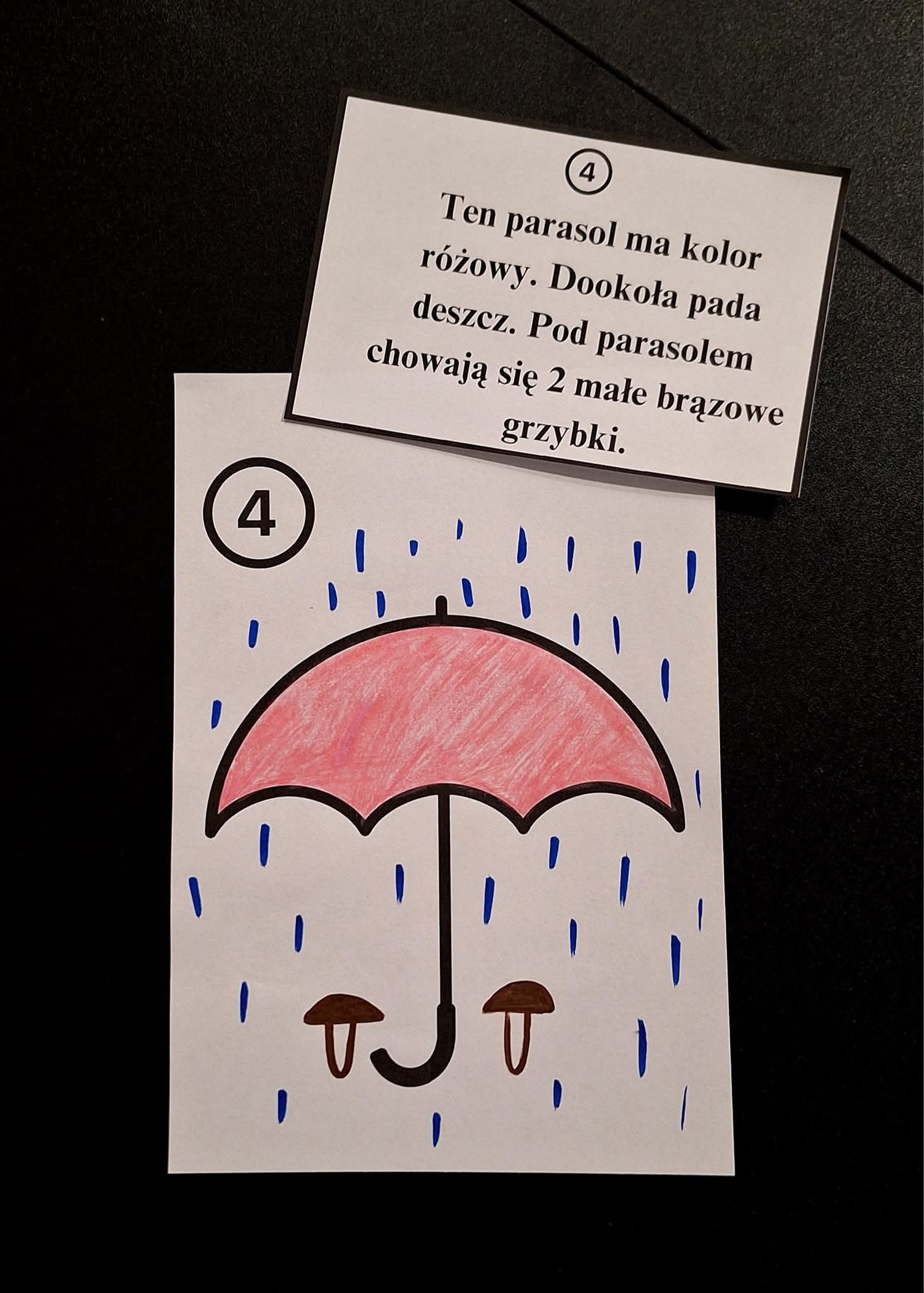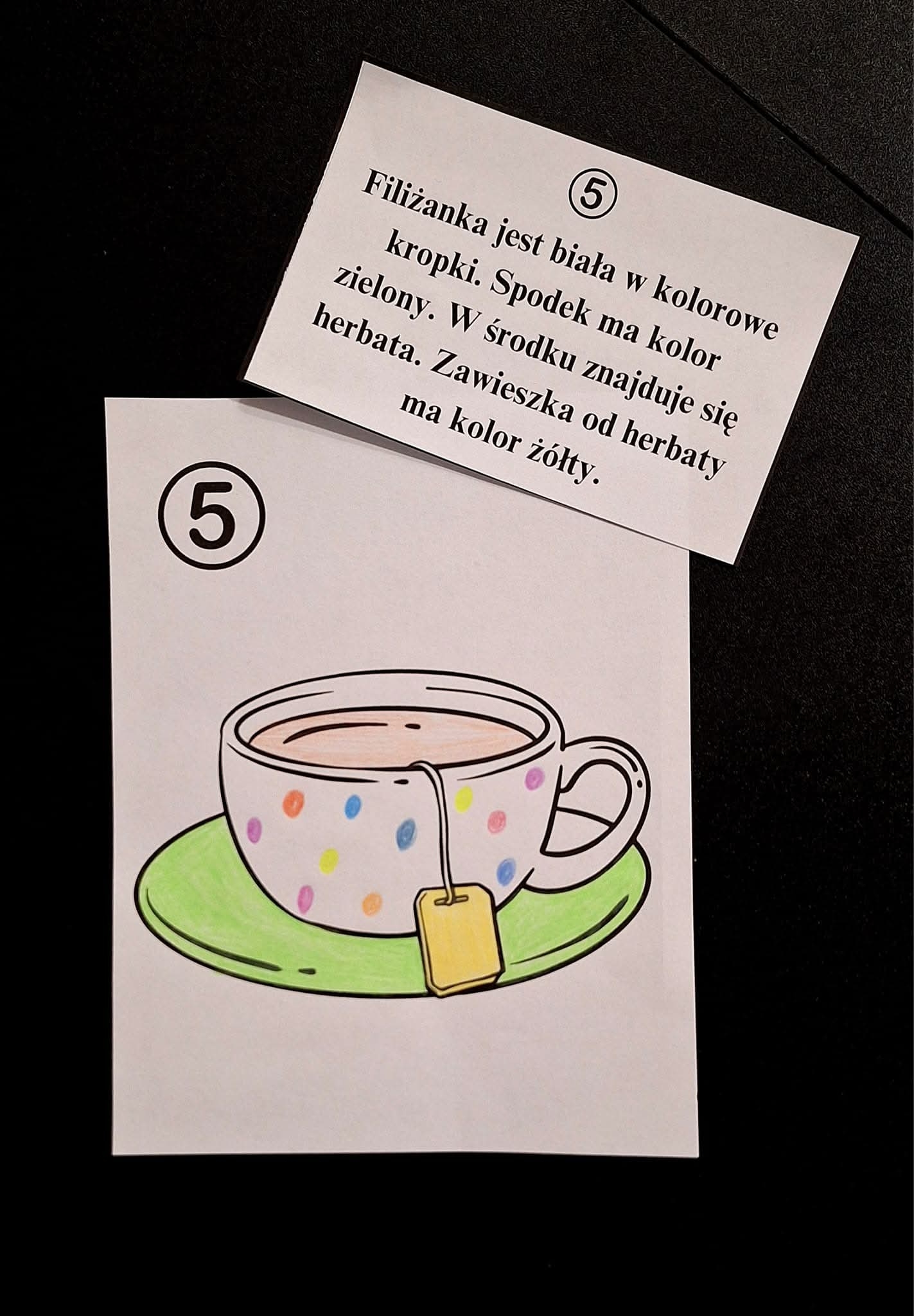 Plik składa się z 10 obrazków i 10 opisów. Nauczyciel/ dziecko czyta opis - uczeń stara się zapamiętać jak najwięcej i pokolorować obrazek zgodnie z instrukcją 🖍