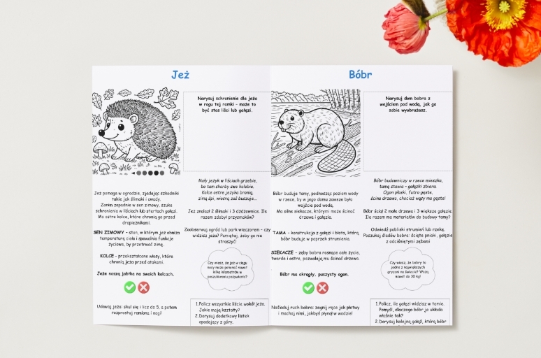 - Edukacja przez zabawę: Każda strona nie tylko zachęca do kolorowania, lecz także zawiera krótkie informacje i ciekawostki przyrodnicze.