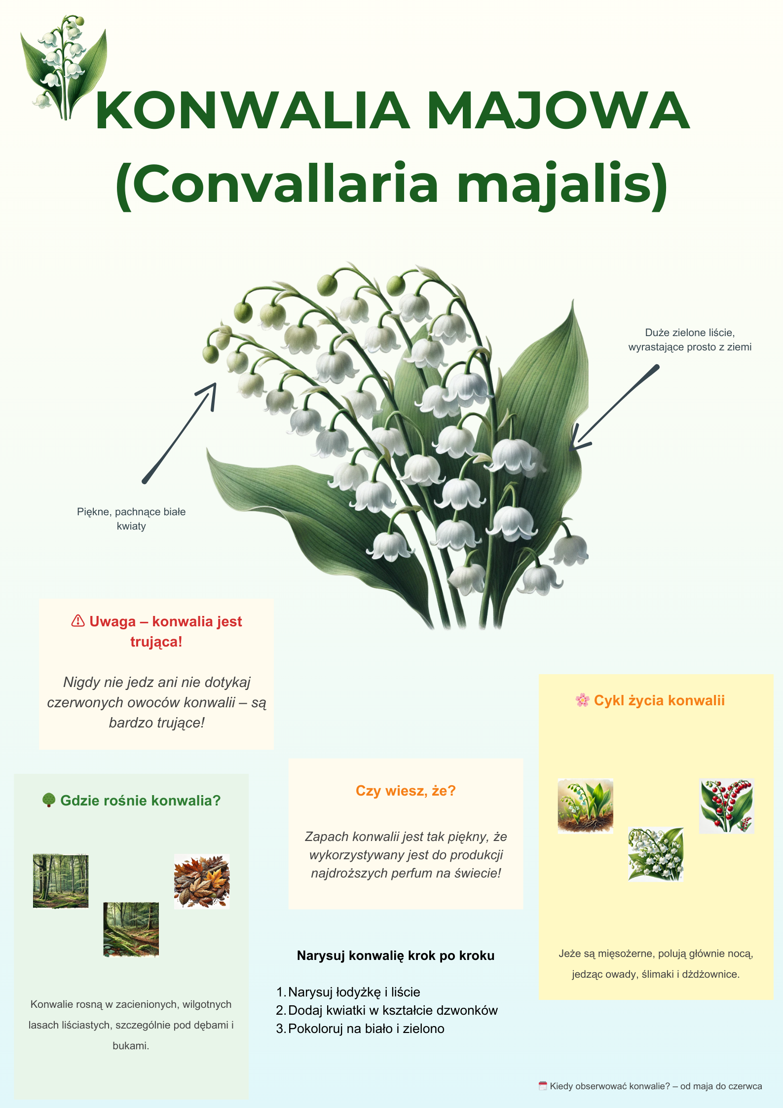 Odkryj tajemnice pięknej, lecz trującej konwalii! Naucz się, jak bezpiecznie obserwować tę niezwykłą roślinę i jak narysować jej pachnące, białe kwiaty.