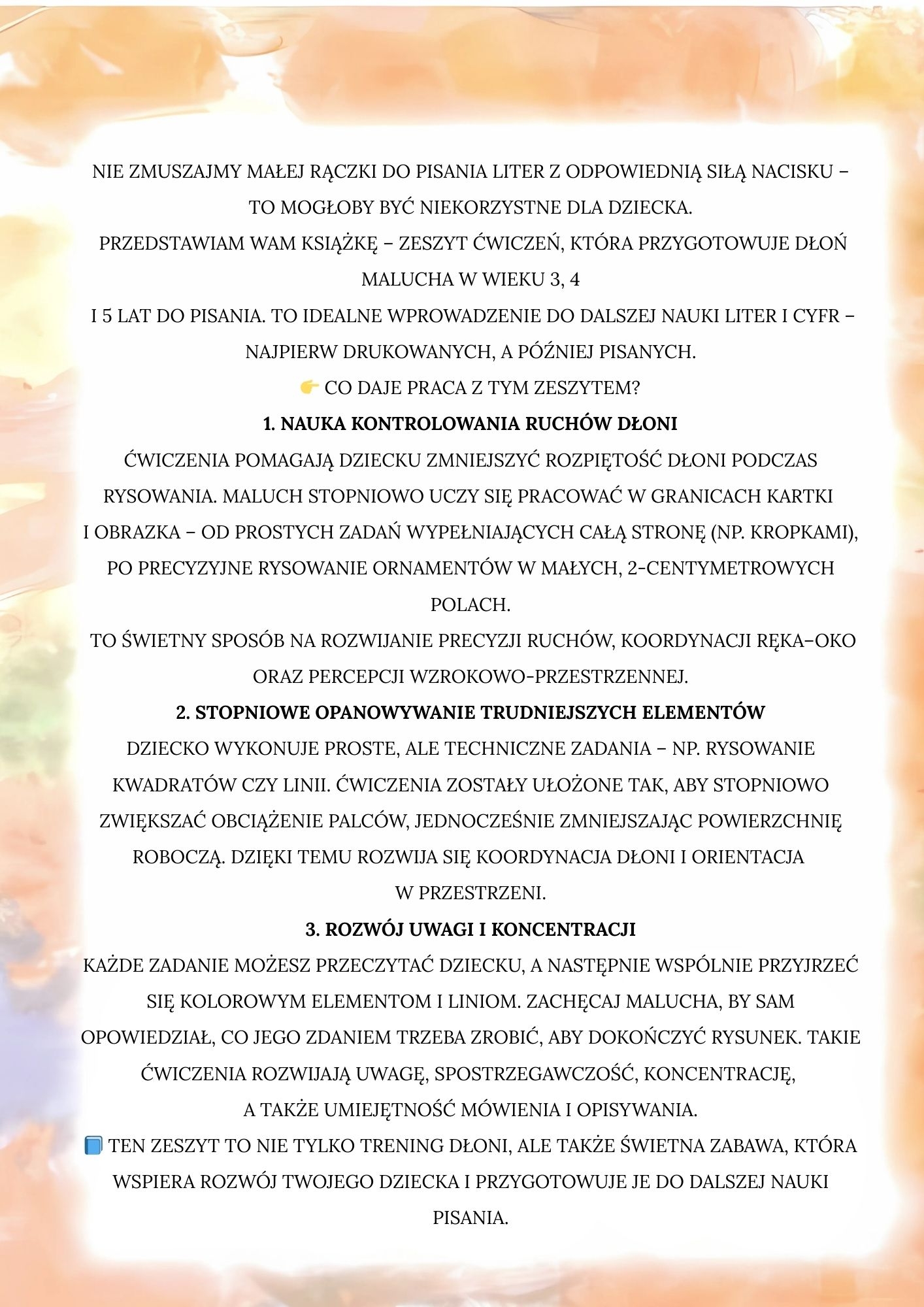 📘 Ten zeszyt to nie tylko ćwiczenia – to pierwszy krok w świat pisania, pełen kolorów, kreatywności i uśmiechu!