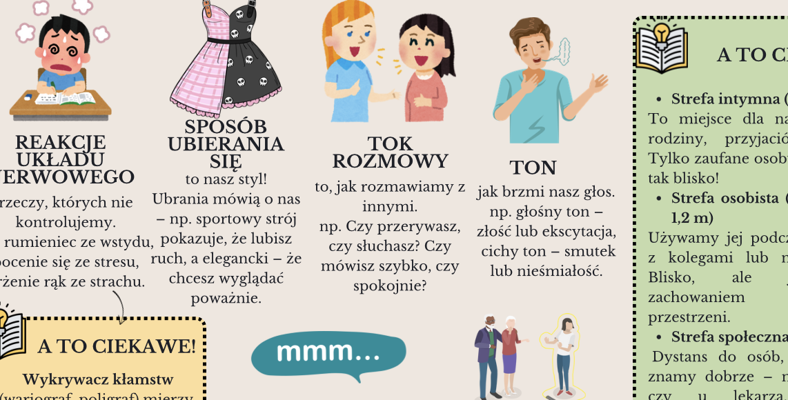 Poznaj tajemniczy język ciała w prosty i zabawny sposób! Ten kolorowy materiał w formie plakatu lub notatki to świetne narzędzie dla uczniów klas 4–8. Dzięki niemu dzieci dowiedzą się, co oznacza mimika, gesty, ton głosu czy postawa ciała – i jak nasze ciało „mówi” bez słów!