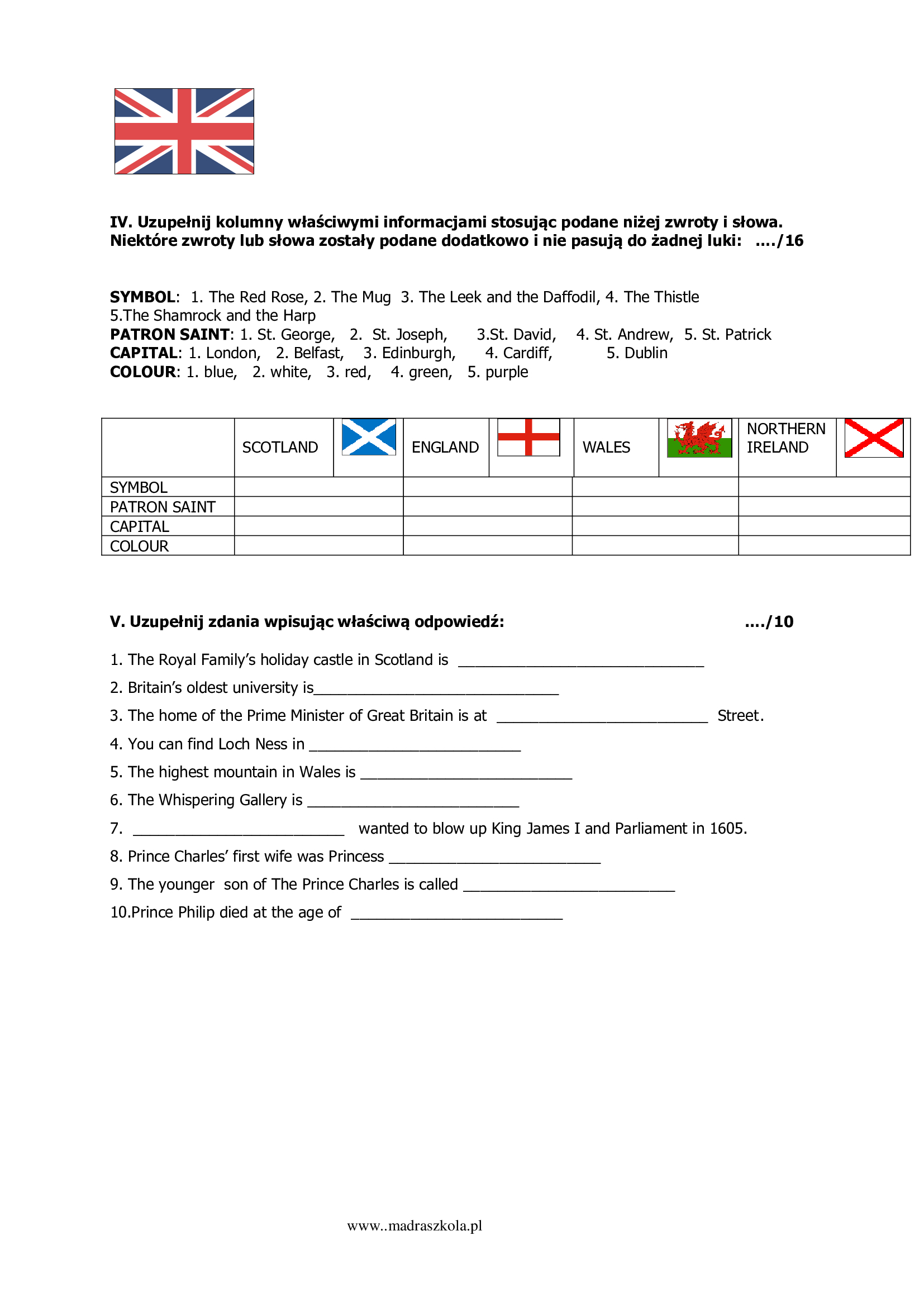KONKURS WIEDZY O KRAJACH ANGLOJĘZYCZNYCH „Be Pro on the United Kingdom"