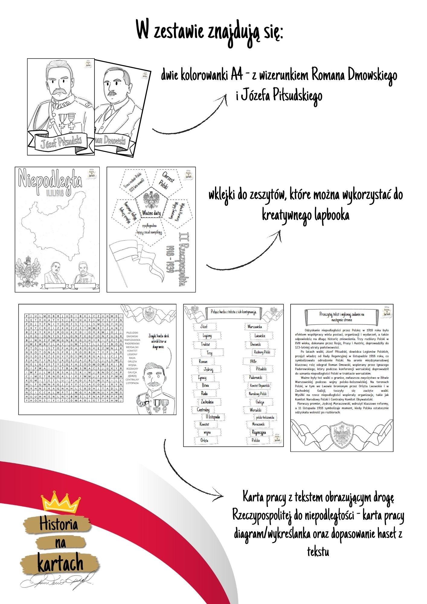 Odkryj Kreatywny Zeszyt Historyczny: Niepodległa, który stworzyłem z myślą o uczniach szkół podstawowych! To wyjątkowy zestaw edukacyjny pełen atrakcyjnych materiałów, które nie tylko pomagają w nauce, ale także zachęcają do twórczej zabawy i rozwijania pasji historycznych.