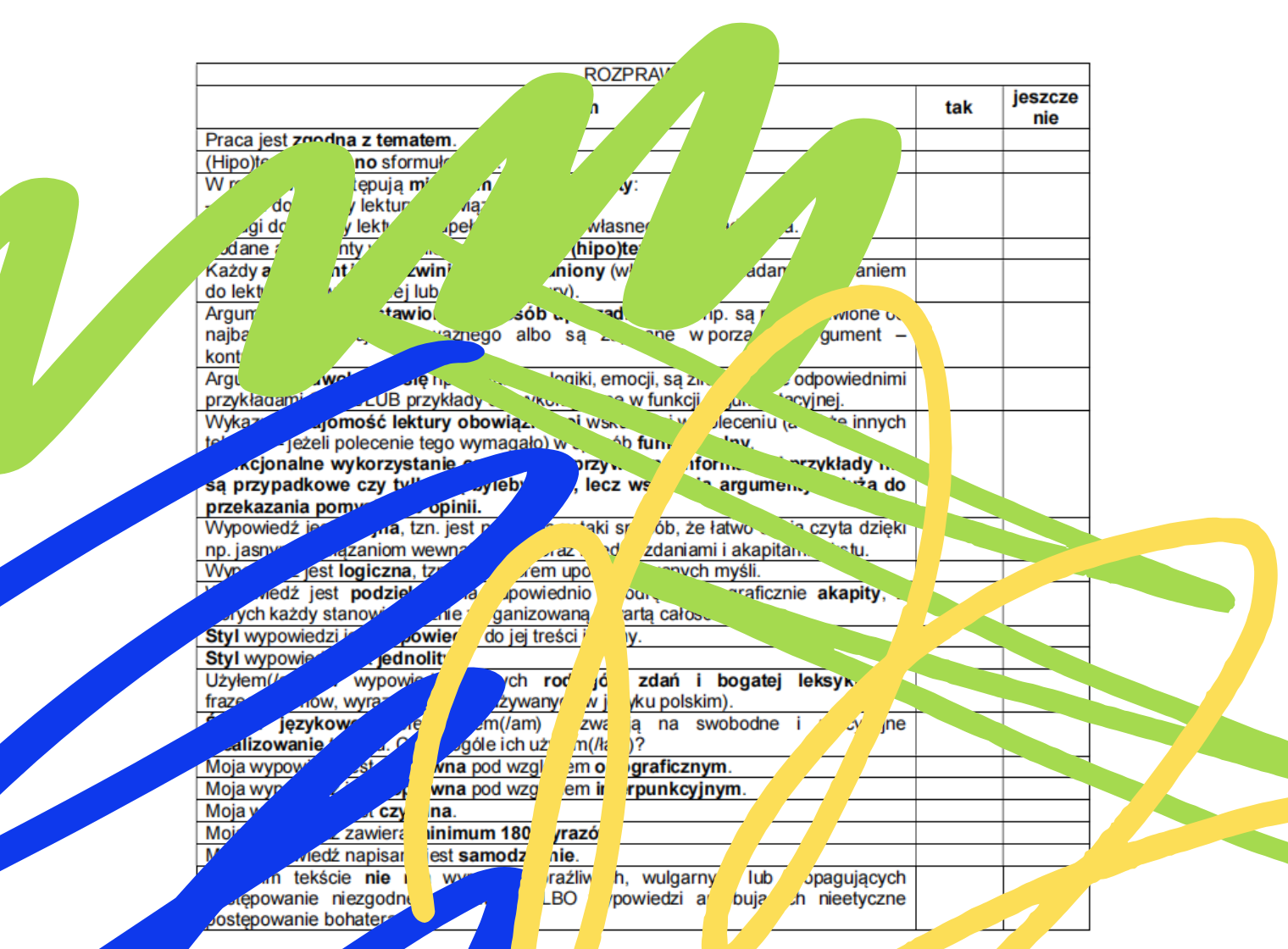 Kryteria NIE zawierają elementów odnoszących się do ortografii, interpunkcji, stylu i poprawności językowej.
