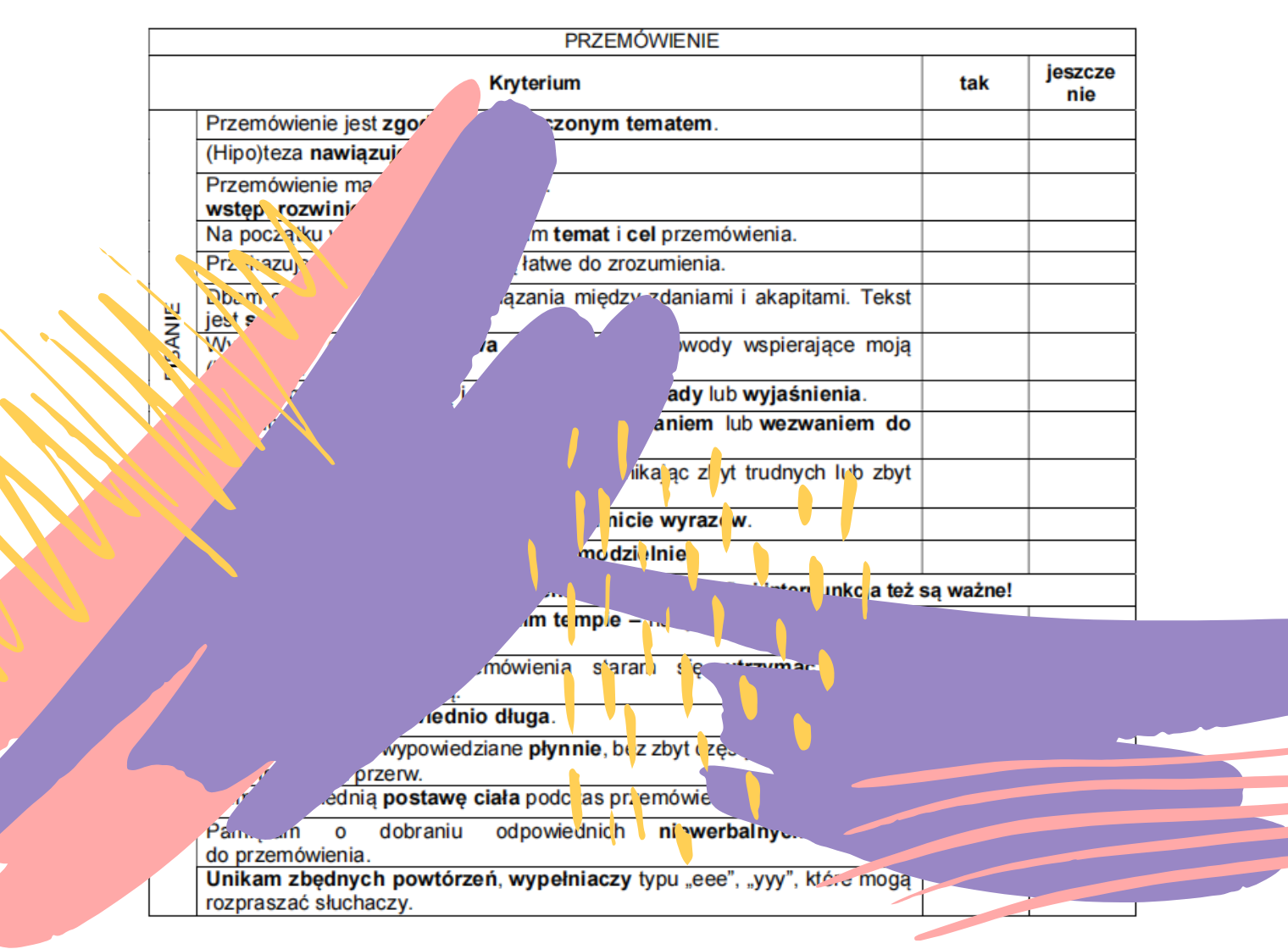 Kryteria realizują zapis z Podstawy Programowej (z dnia 28 czerwca 2024 r.) na lekcjach języka polskiego do szkoły podstawowej w celach szczegółowych dla klas IV-VI, w kategorii – tworzenie wypowiedzi | mówienie i pisanie: