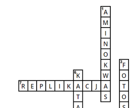 Graficzna krzyżówka z spisanymi hasłami do samodzielnego usunięcia. (Kupujesz krzyżówkę tylko uzupełnioną) Opisy do haseł znajdujących się poziomo i pionowo.