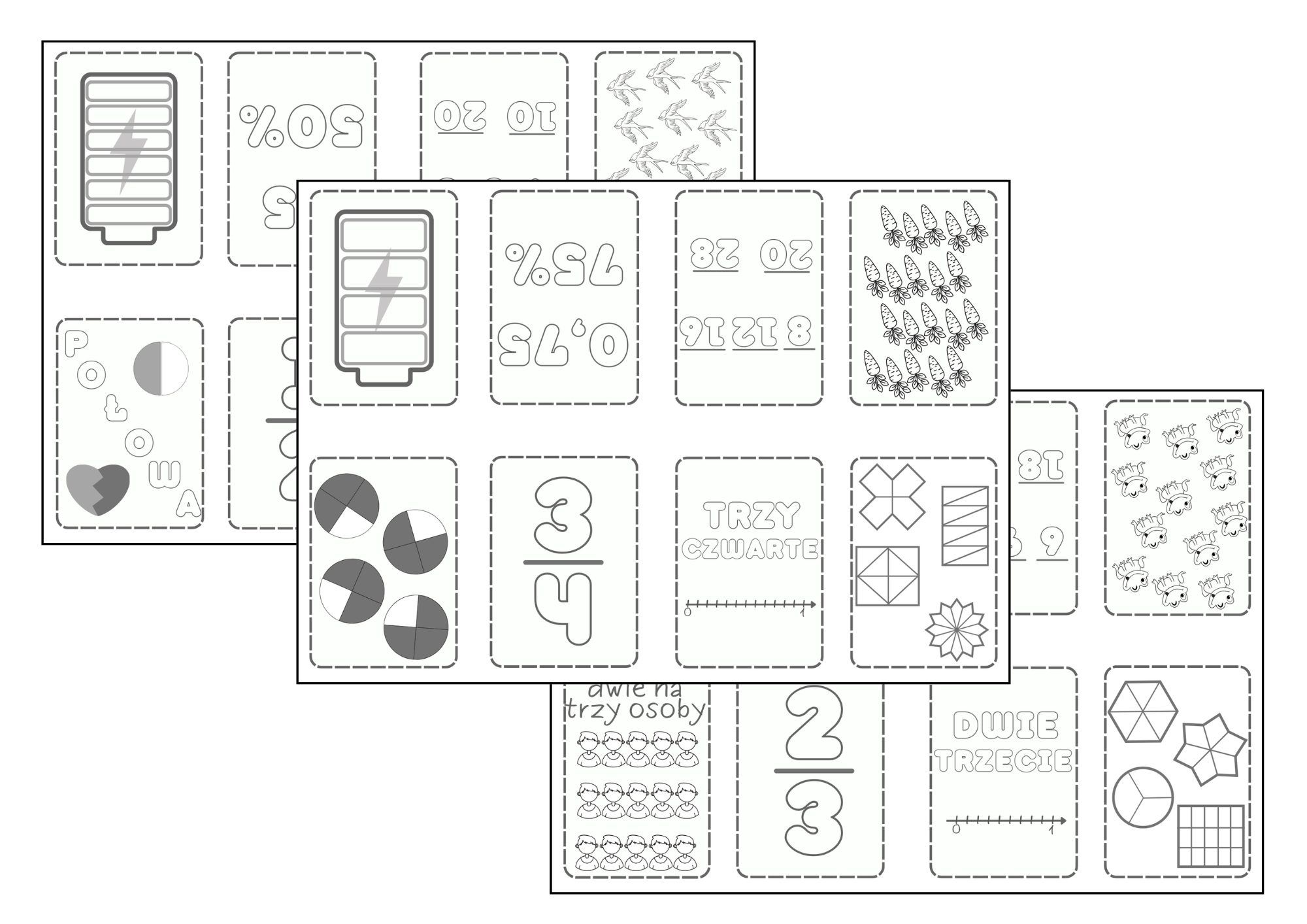 W przystępny sposób dzieci oswajają się z różnymi aspektami ułmków: jako część całości, jako iloraz, jako część zbioru, na osi liczbowej, a nawet procent i ułamake dziesiętny.