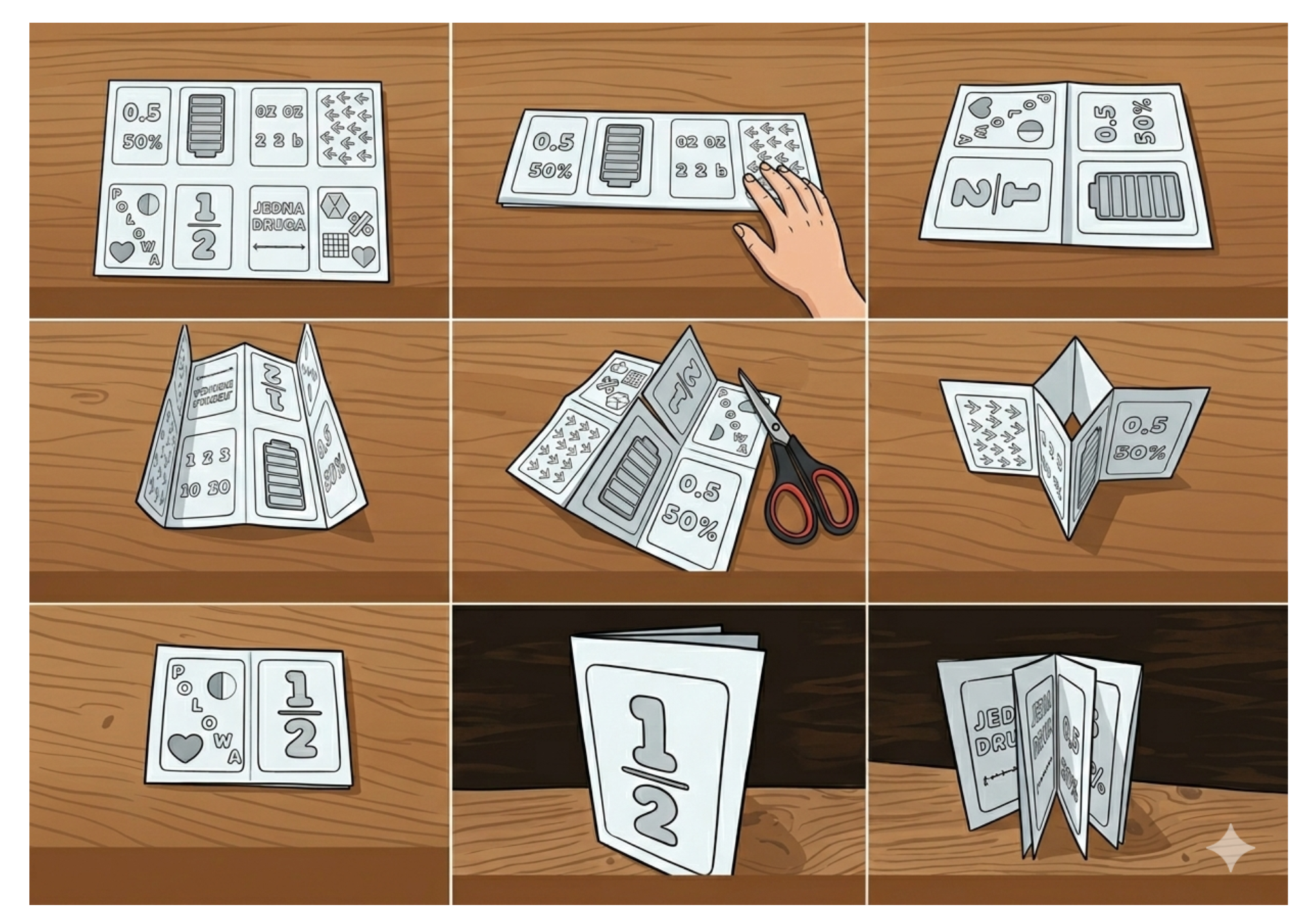 Materiał zawiera instrukję wydruku oraz sposobu składania książeczki.