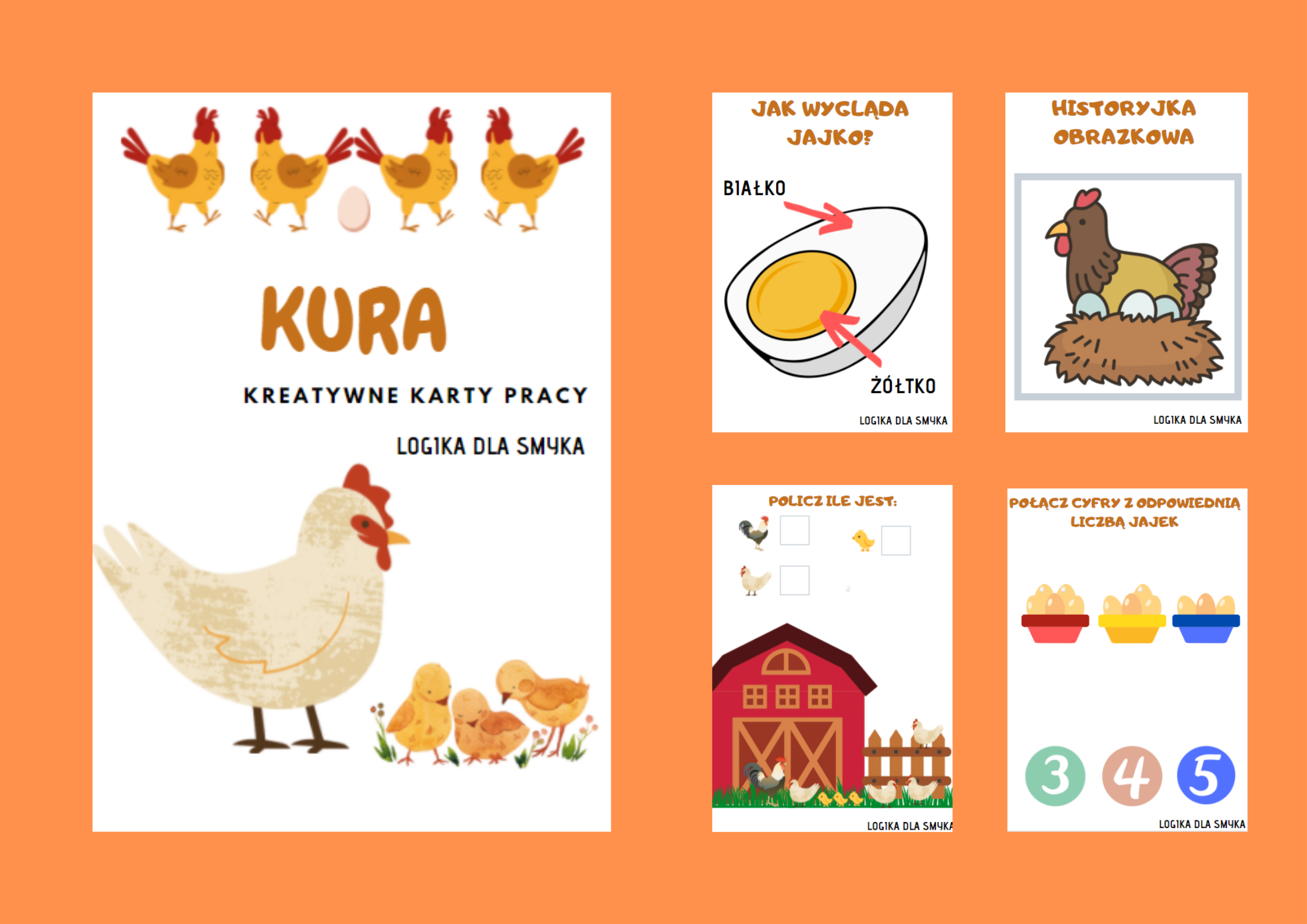 * 5 kart historyjki obrazkowej jak powsaje kura,