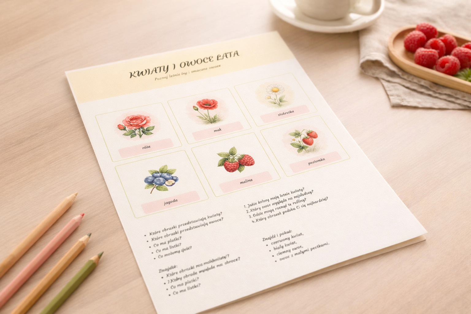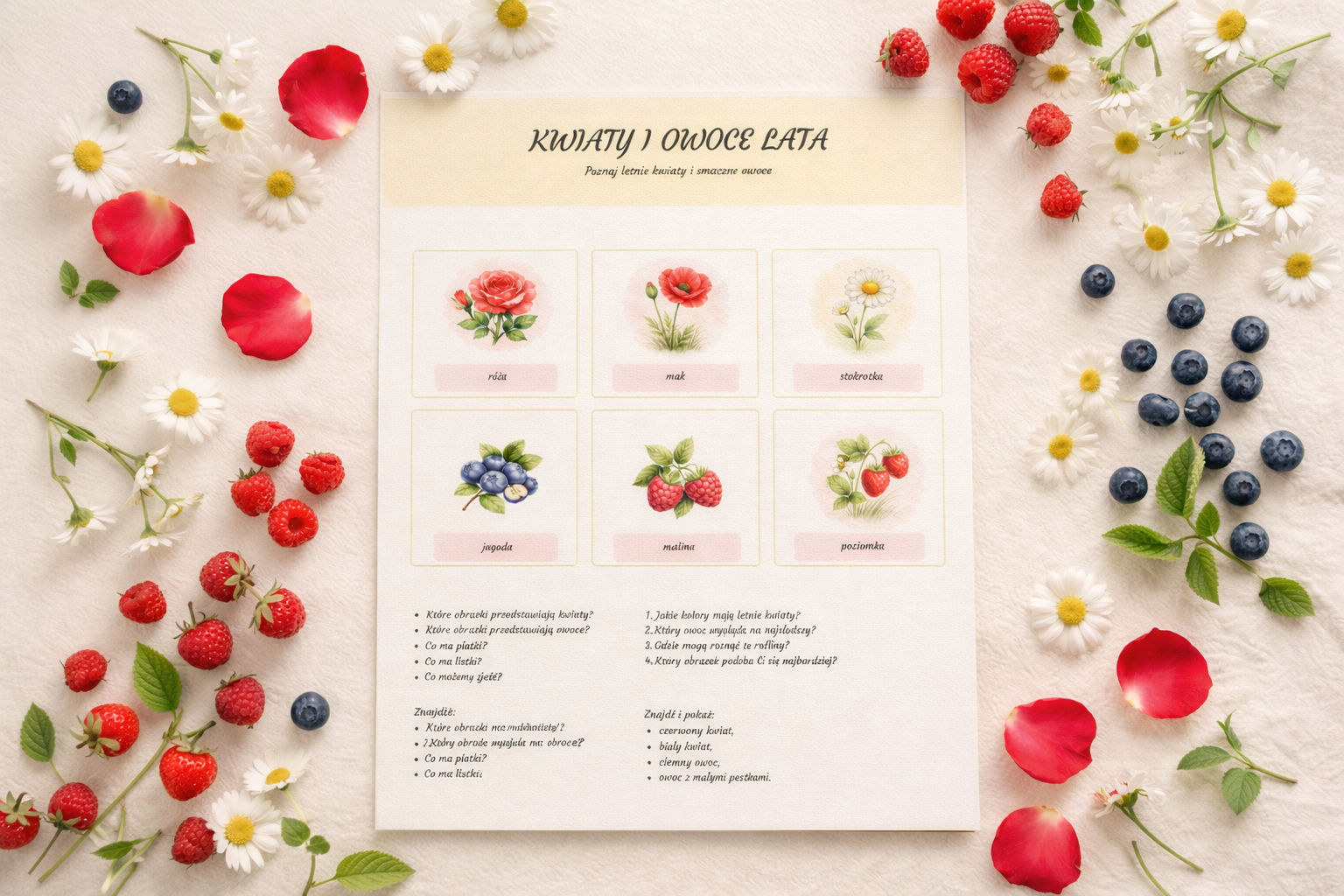 #kartapracy #pdfdladzieci #edukacjaprzedszkolna #edukacjawczesnoszkolna #materiałydydaktyczne #nauczyciel #przedszkole #latowprzedszkolu #kwiaty #owoce #przyroda #naukaprzezzabawe #pomocedydaktyczne #drukowalne #kartapracydladzieci #letniezajecia #rozwójsłownictwa #spostrzegawczość #terapiapedagogiczna #rewalidacja