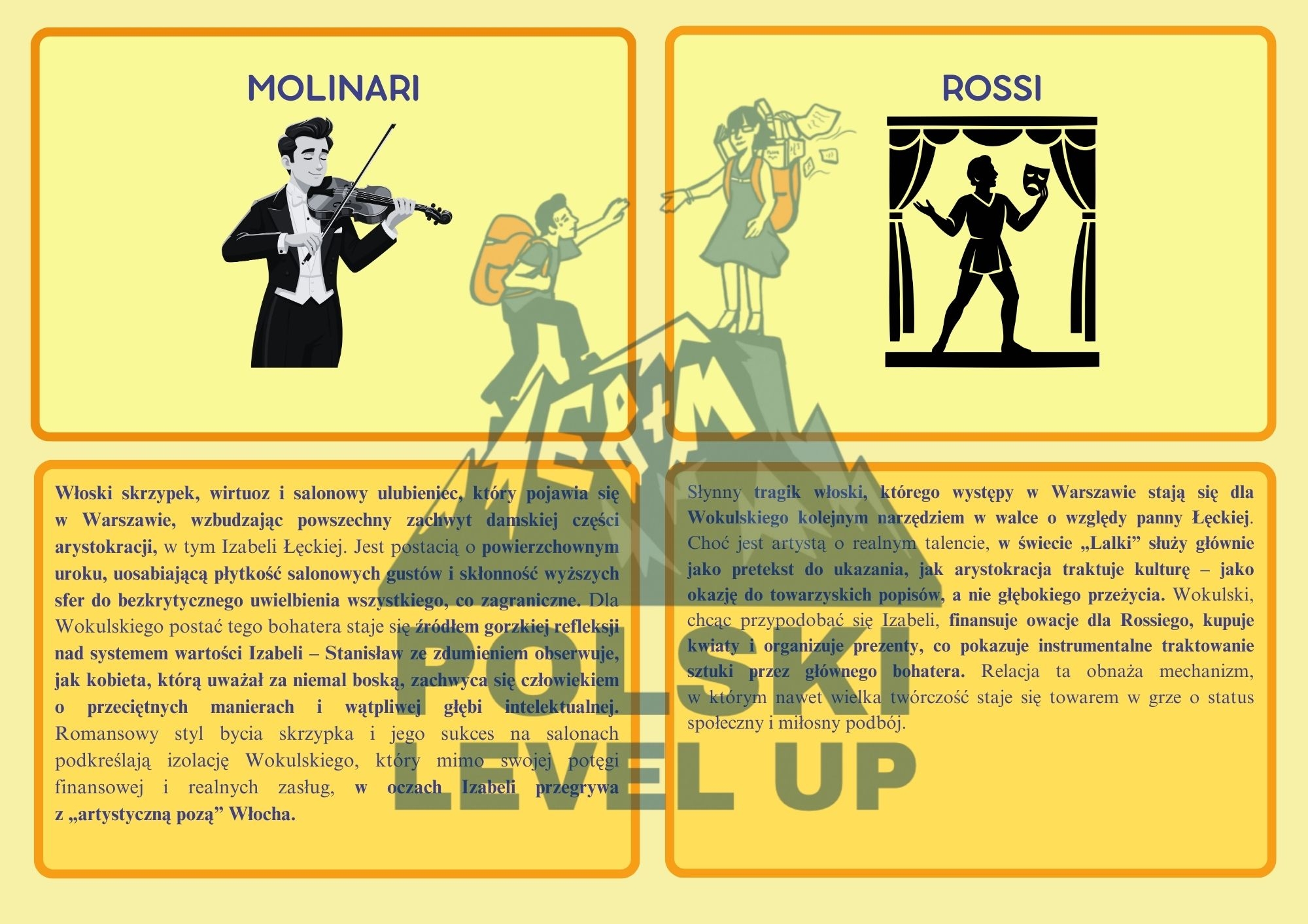🔹„Lalka” w fiszkach – 46 bohaterów w pigułce Zapamiętywanie bohaterów z „Lalki” nie musi być męczące ani nudne. Dlatego stworzyliśmy zestaw fiszek z 46 bohaterami – krótko, jasno i dokładnie tak, jak potrzeba do nauki i powtórek. 🔹 Każda fiszka to: