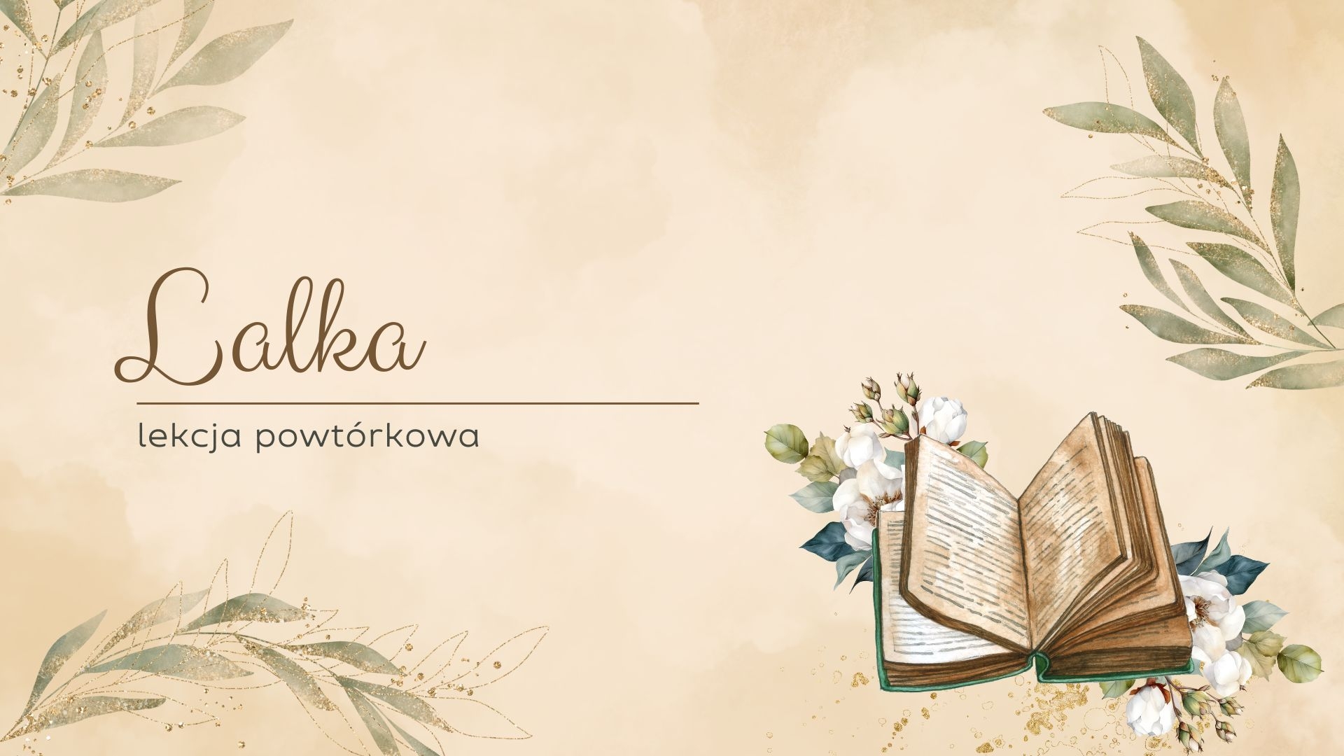 Kompletna, minimalistyczna prezentacja do przeprowadzenia lekcji powtórkowej z „Lalki” Bolesława Prusa. Idealna na tablicę multimedialną, do zajęć stacjonarnych i online.