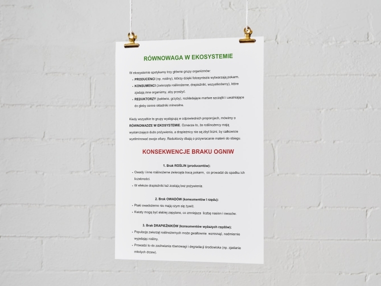- Gotowe plansze tematyczne: jasno przedstawiają kluczowe pojęcia (producent, konsument, drapieżnik, reduktor).