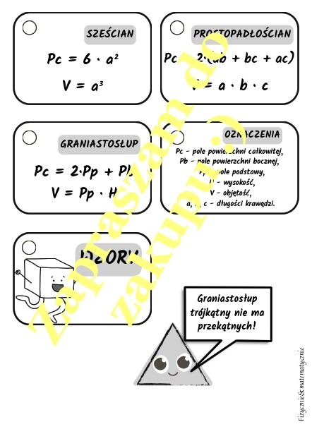 Lapbook " Graniastosłupy" jest formą kreatywnego zaprezentowania informacji na dany temat. Materiał zawiera (7 stron formatu A4) propozycję elementów do wydrukowania i wycięcia, które pomogą stworzyć lapbooka na temat graniastosłupów. Taka forma pracy świetnie nadaje się na lekcję powtórzeniową, zajęcia dodatkowe lub jako praca wykonywana w domu.  Proponuję elementy wydrukować na kolorowym papierze. Zawartość: - definicja graniastosłupa, - przykładowe rodzaje graniastosłupów + ramki do ich podpisania, - najczęściej występujące kąty - do narysowania na podstawie opisu, - przykładowe siatki graniastosłupów, - ćwiczenie sprawdzające nazewnictwo elementów graniastosłupa, - 2 zadania obliczeniowe, - elementy dekoracyjne.