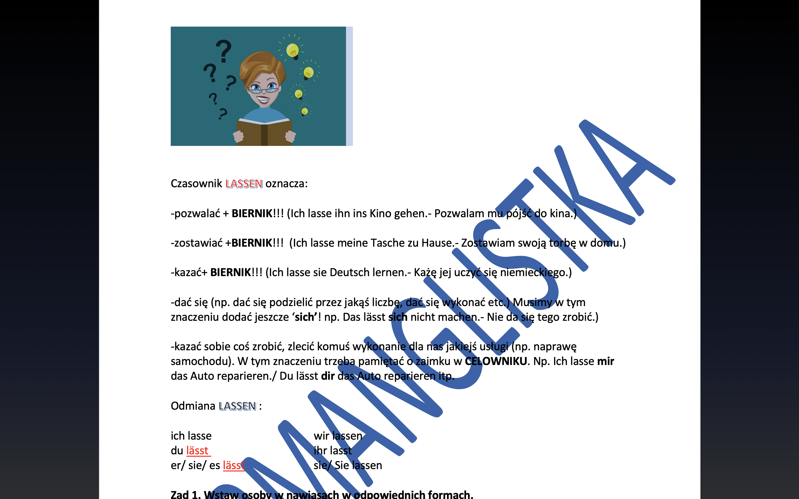 LASSEN - objaśnienie + 3 ćwiczenia z kluczem- j. niemiecki