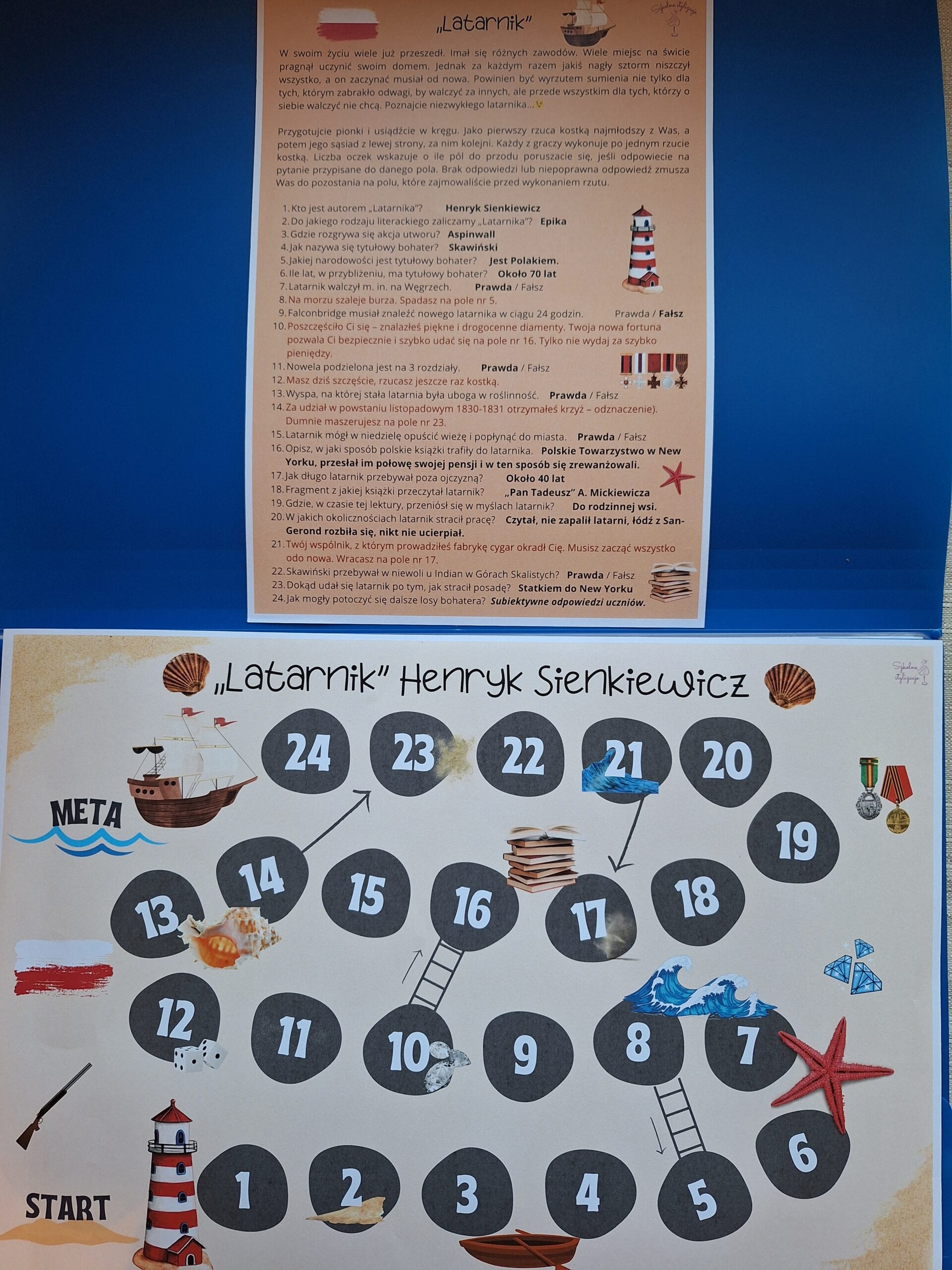 Gra planszowa to alternatywa dla typowego testu z lektury. Grafika nawiązuje do treści utworu, przez co uczniowie łatwiej mogą zapamiętać poszczególnych bohaterów, jak i samą treść. Gra świetnie prezentuje się w formacie A3