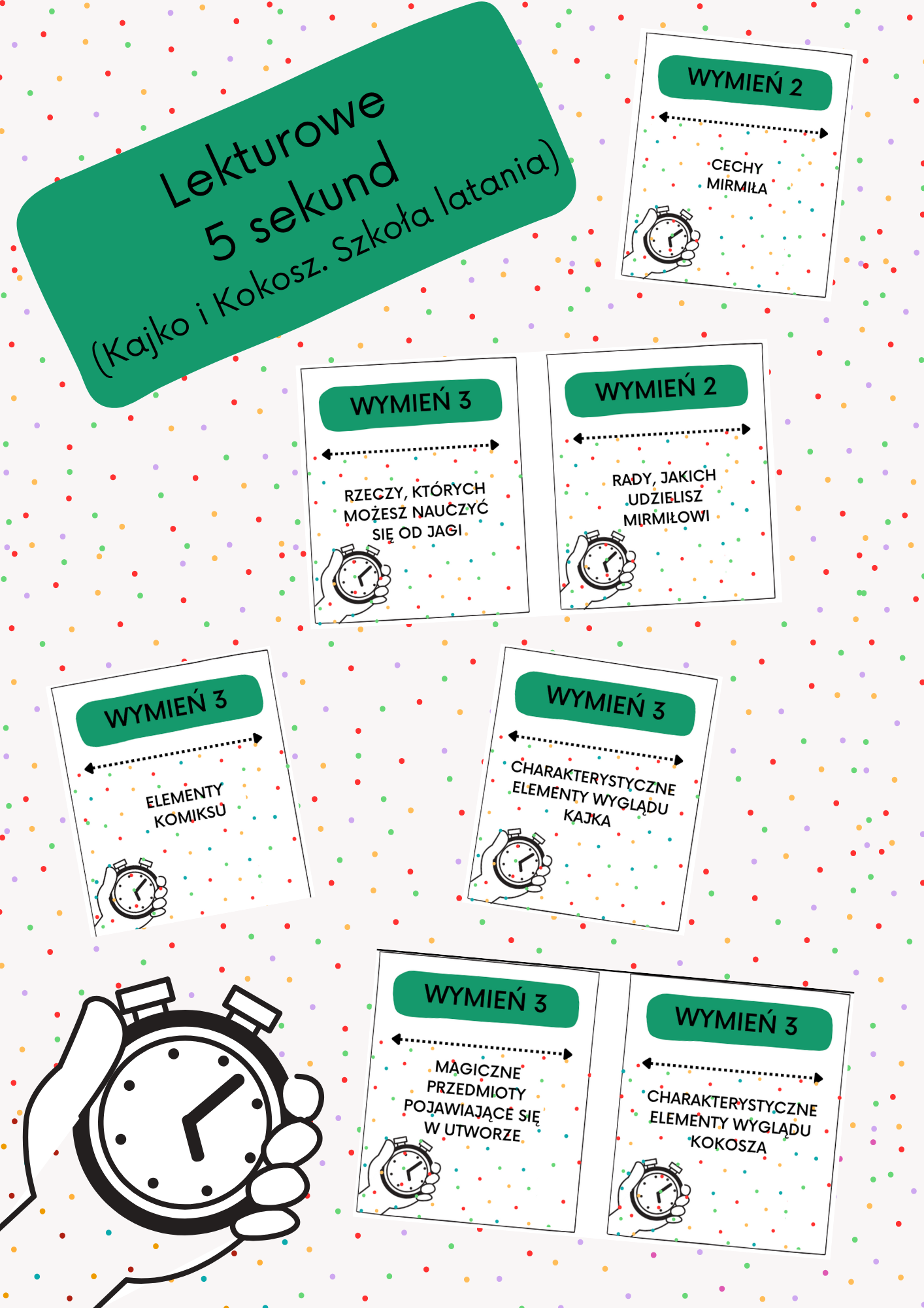 Karty (gotowe do wydrukowania i zalaminowania) sprawdzą się podczas omawiania, wprowadzenia lub powtórki lektury.