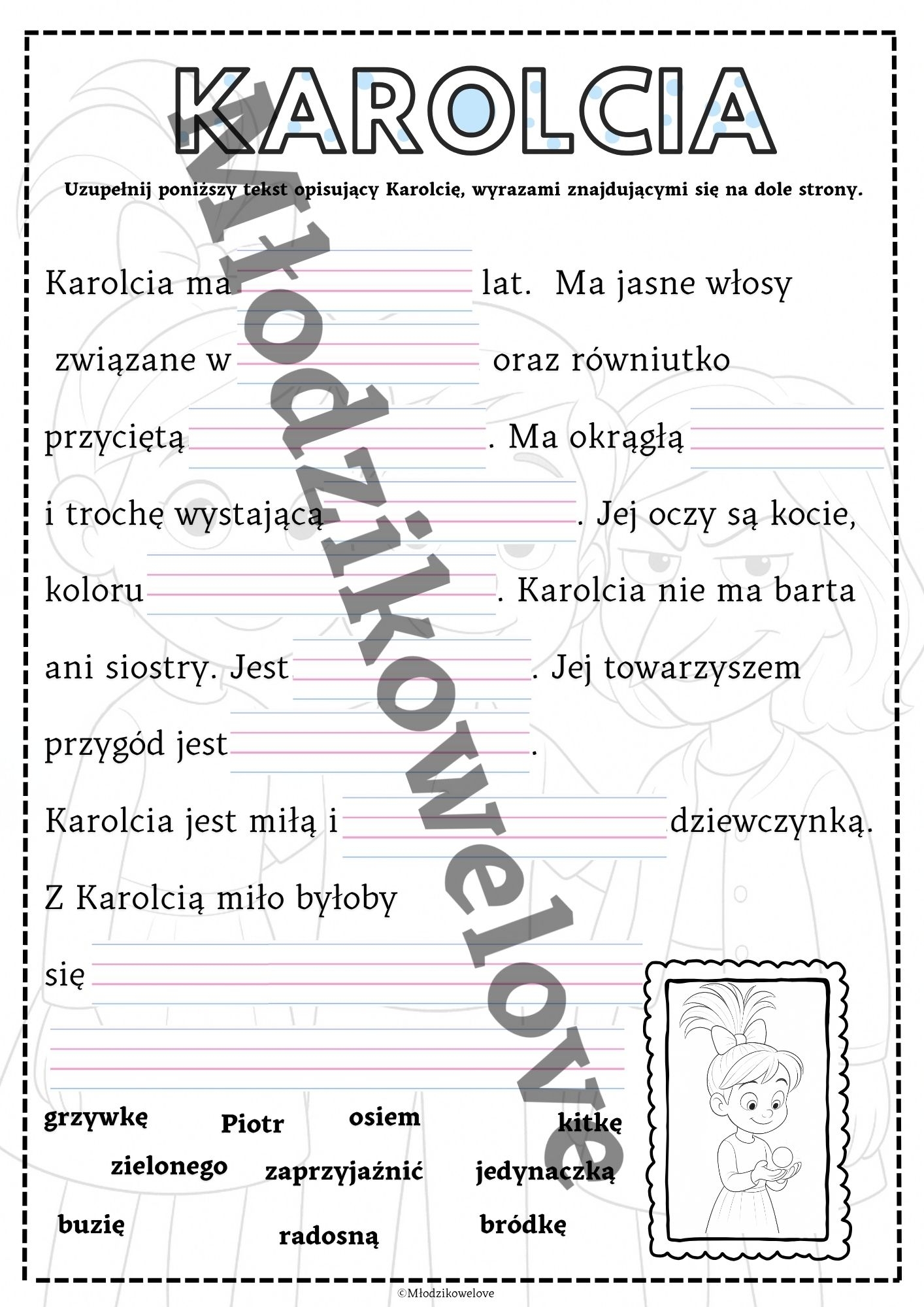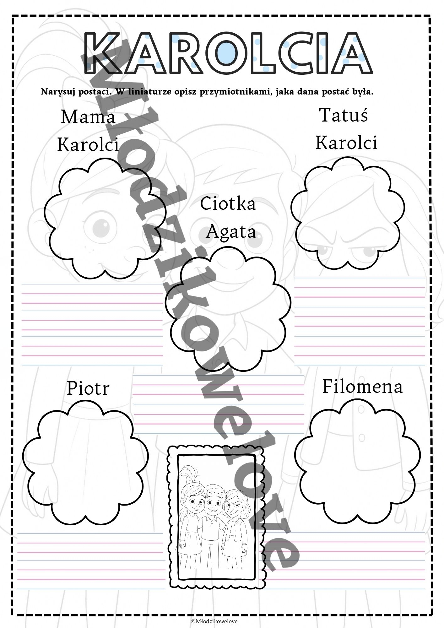To wartościowa pomoc dydaktyczna, dzięki której dzieci z przyjemnością utrwalą treść książki i poznają świat Karolci w sposób ciekawy i angażujący! 🌟