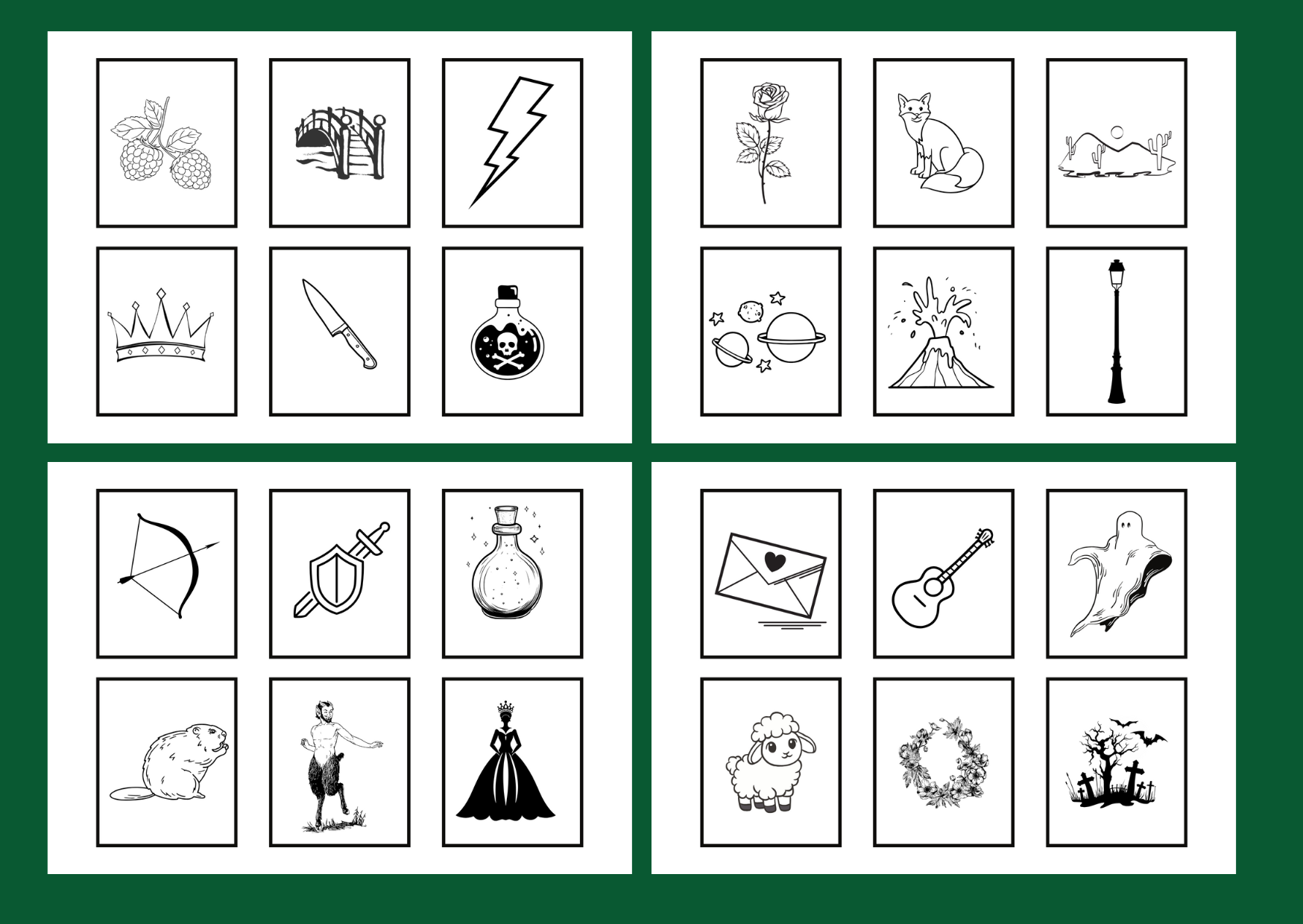 Materiał składa się z 17 kartek w formacie A4 z obrazkami kojarzącymi się z lekturami omawianymi w klasach 4-8 (na każdej kartce znajduje się 6 fiszek). Można je wykorzystać na wiele sposobów, np. podczas pracy indywidualnej lub grupowej, fiszki można rozdać lub losować. Zadaniem uczniów jest podanie tytułu i autora lektury, z którą można skojarzyć obrazek oraz uzasadnienie jego związku z lekturą.