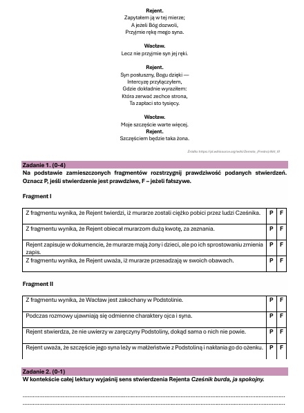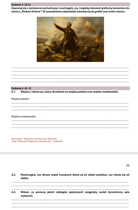 -Zadania typu egzaminacyjnego – pytania otwarte, interpretacyjne, analiza językowa, wnioskowanie.
