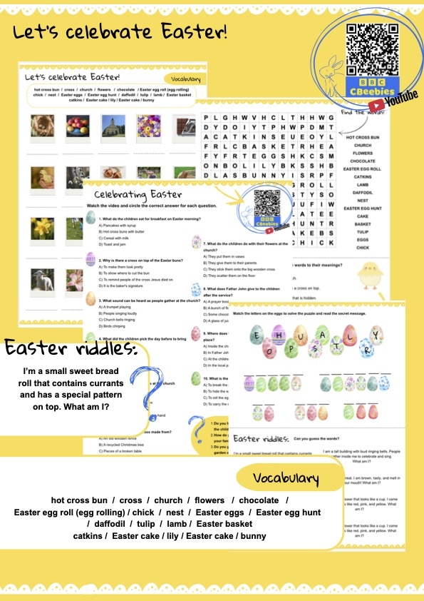 Cel edukacyjny: Uczeń poznaje brytyjskie i uniwersalne tradycje wielkanocne, rozwija słownictwo związane z wiosną i religią oraz doskonali umiejętność wyłapywania informacji z autentycznego nagrania wideo.