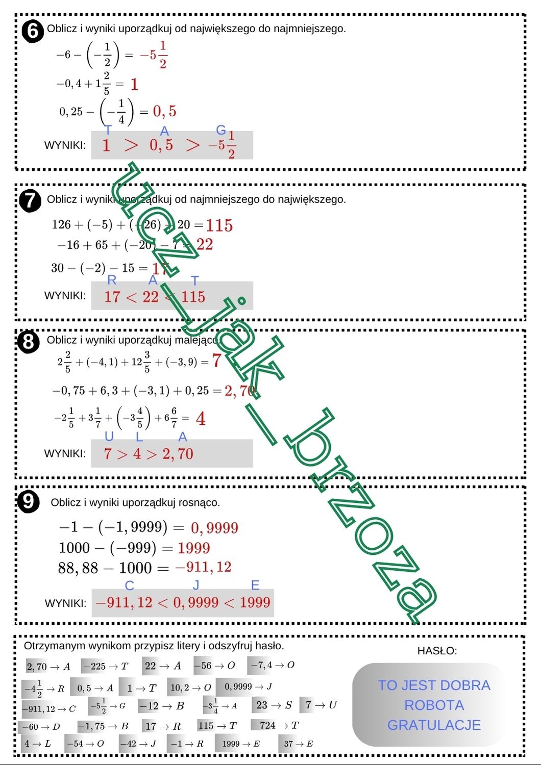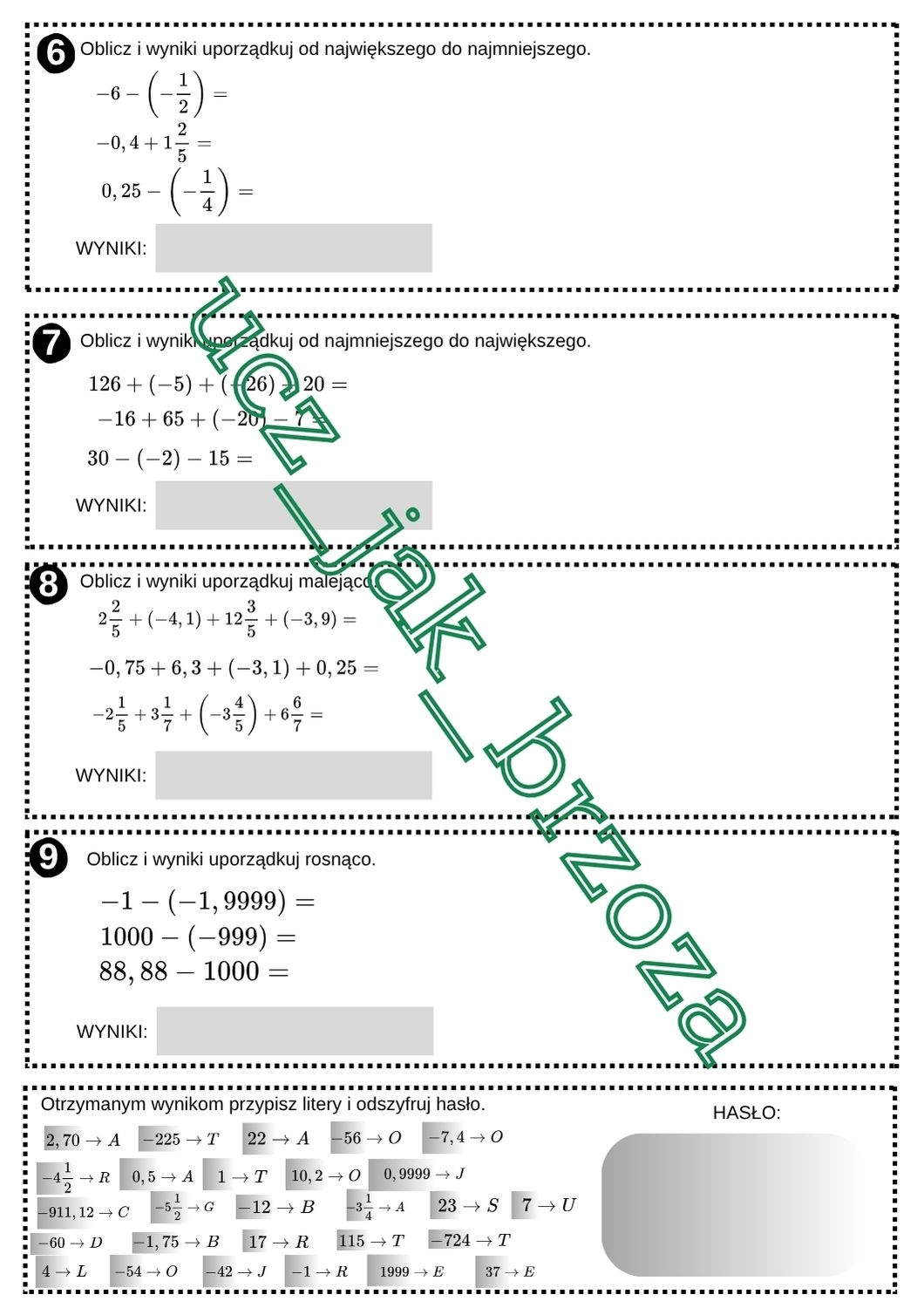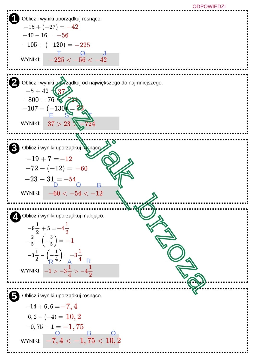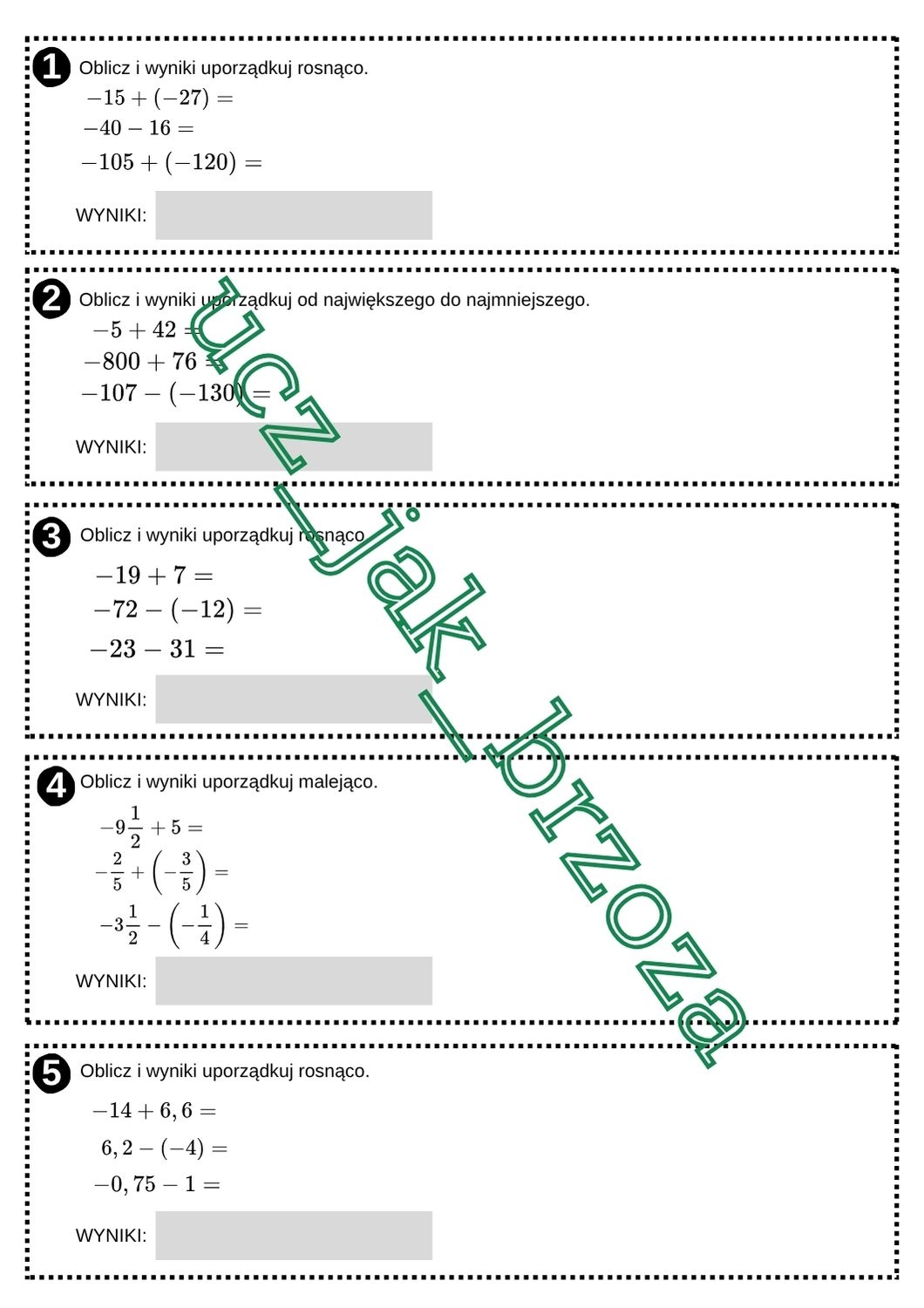Zadania wymuszają na uczniach nie tylko liczenie, ale również porządkowanie wyników w określony sposób (rosnąco, malejąco, od największego/najmniejszego), co utrwala rozumienie osi liczbowej i wartości liczb ujemnych.