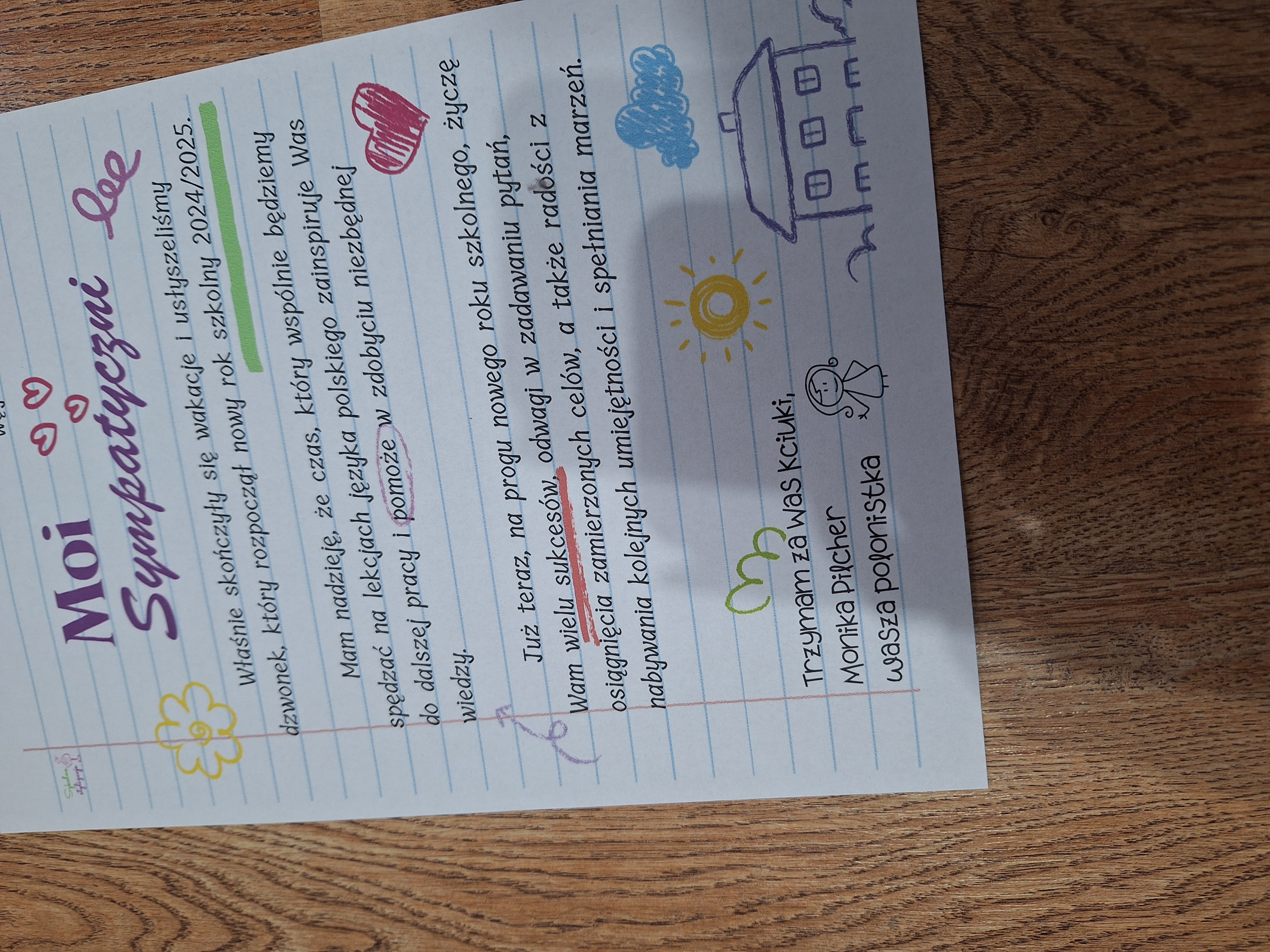 "List polonistki do uczniów" to ciekawa propozycja na początek roku szkolnego, która łączy życzenia nauczycielki skierowane do uczniów z zabawną grafiką.