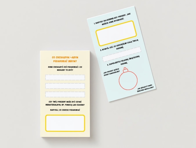 - Zadania takie jak: „Narysuj najdziwniejszy prezent”, „Zaprojektuj własną świąteczną ozdobę” czy „Wymyśl coś, co uszczęśliwi całą twoją rodzinę”.
