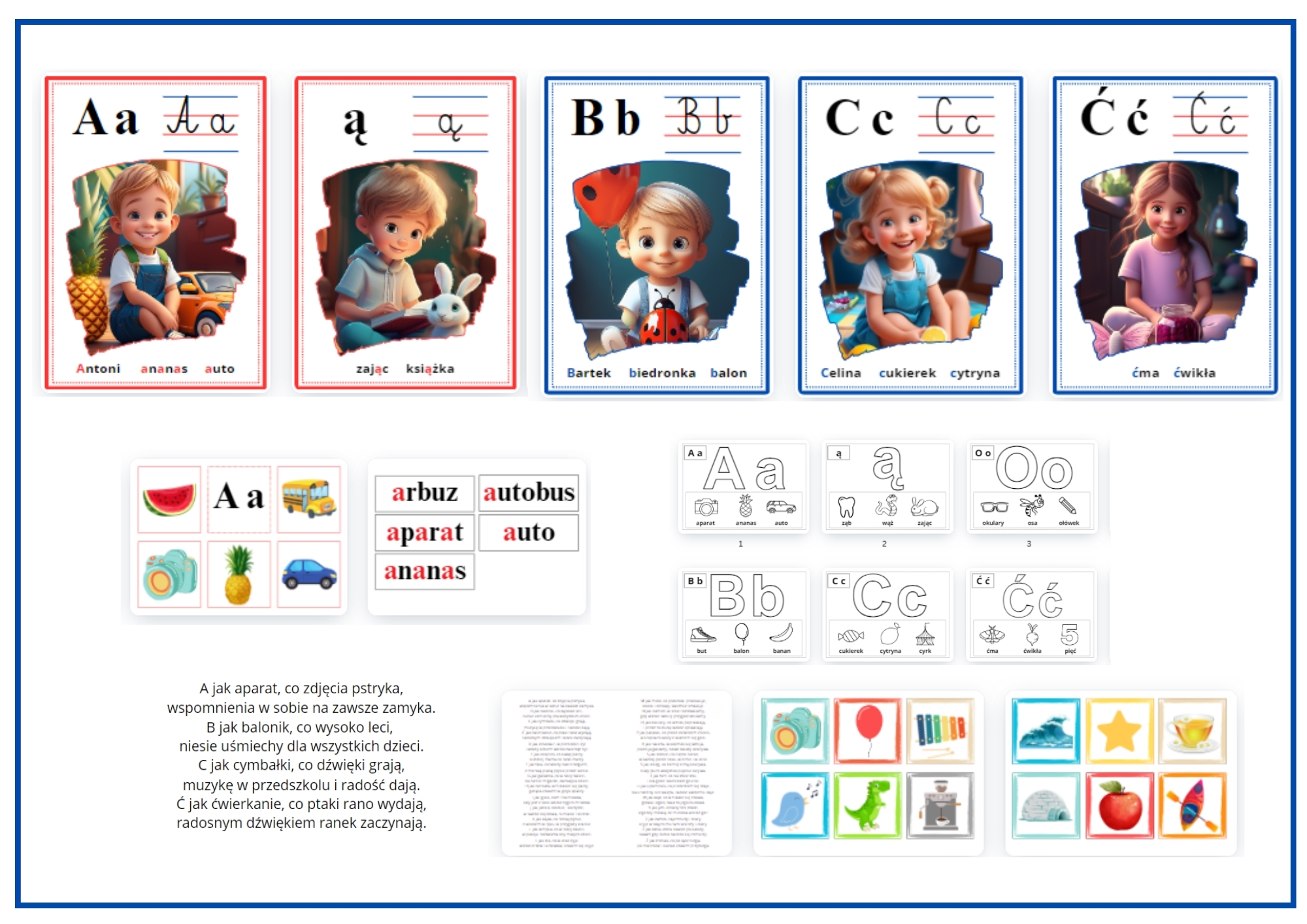 Dodatkowo karty pracy - pokoloruj okienko z literą, pokoloruj literę, znajdź i zaznacz literę.