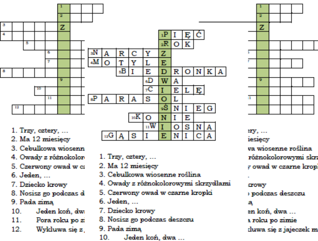 Zapraszam do zakupu logogryfu dla klasy 1 z hasłem Przedwiośnie. Pytania są skorelowane z serią "Szkolni Przyjaciele" Wydawnictwa WSiP. Plik zawiera również rozwiązanie.