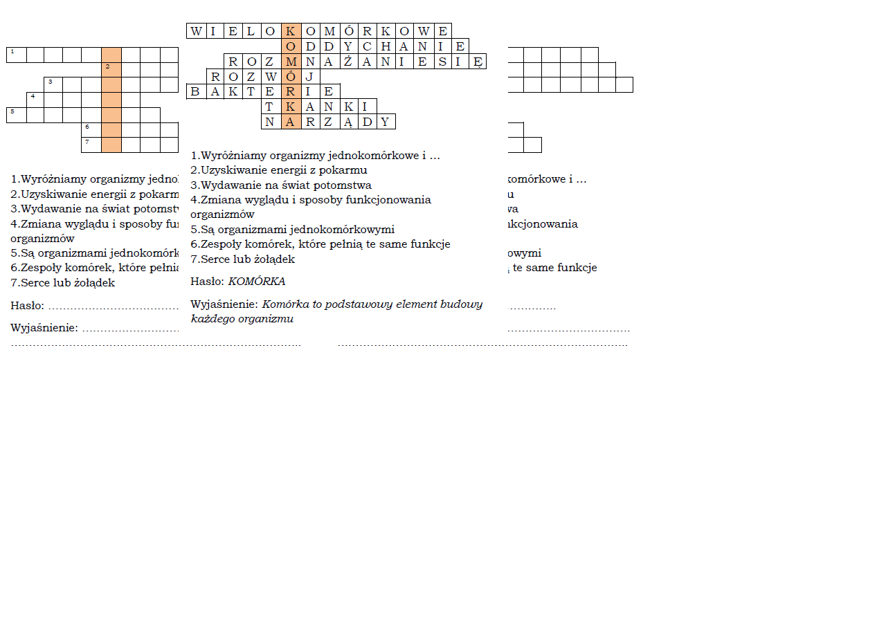 Logogryf dla klasy 4 do tematu "Organizmy mają wspólne cechy"