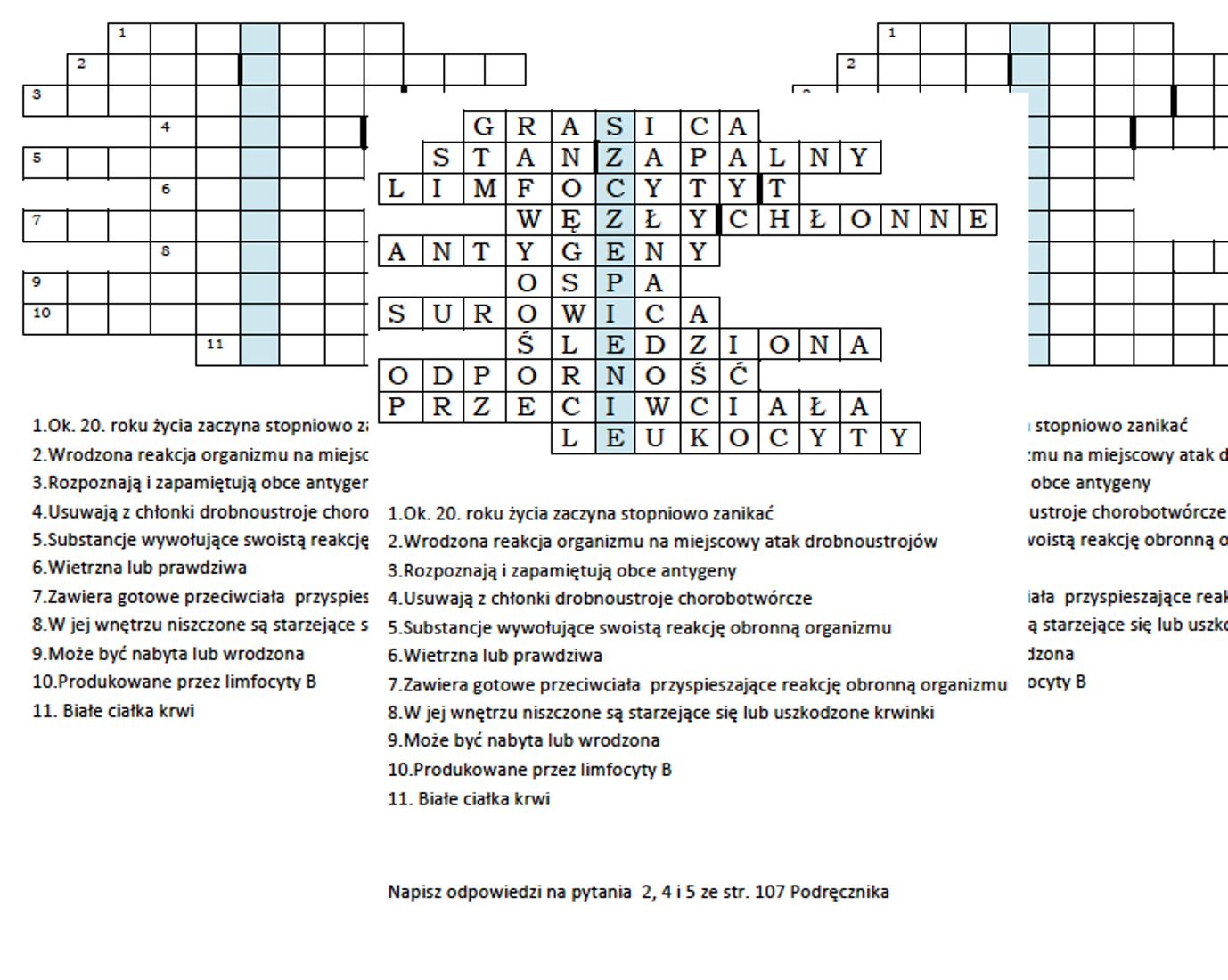 Logogryf na podsumowanie lekcji o budowie i funkcjonowaniu układu odpornościowego