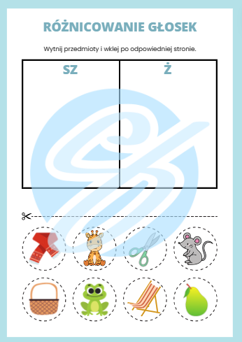 Doskonalenie mowy nigdy nie było tak fascynujące! Oferujemy praktyczne narzędzie na zajęcia logopedyczne, które może pomóc Twoim uczniom efektywnie pracować nad różnicowaniem słuchowym głosek. Dziecko zapoznaje się z obrazkami, wycina je, dorosły czyta słowo, które dziecko próbuje dopasować a następnie przykleja obrazek w odpowiednią tabelkę.