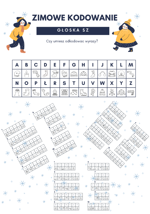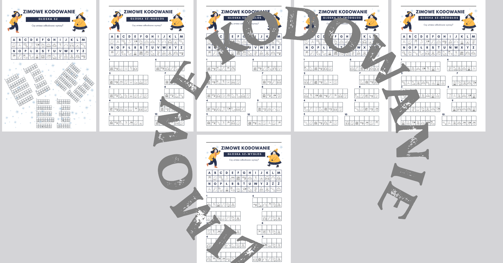 Zestaw materiałów logopedycznych przeznaczony do utrwalania prawidłowej wymowy głoski „sz” w różnych pozycjach w wyrazie. Zadania polegają na odkodowywaniu wyrazów zawierających głoskę „sz” w nagłosie, śródgłosie oraz wygłosie. Materiał obejmuje 50 wyrazów, starannie dobranych z myślą o terapii logopedycznej dzieci w wieku przedszkolnym i wczesnoszkolnym. Ćwiczenia wspierają rozwój analizy i syntezy słuchowej, analizy wzrokowej, koncentracji uwagi oraz poprawnej artykulacji. Zestaw doskonale sprawdzi się podczas zajęć logopedycznych, terapii pedagogicznej, zajęć rewalidacyjnych oraz do pracy w domu. Zastosowanie: -terapia logopedyczna -utrwalanie głoski „sz” -ćwiczenia wzrokowe i artykulacyjne -praca indywidualna i gabinetowa