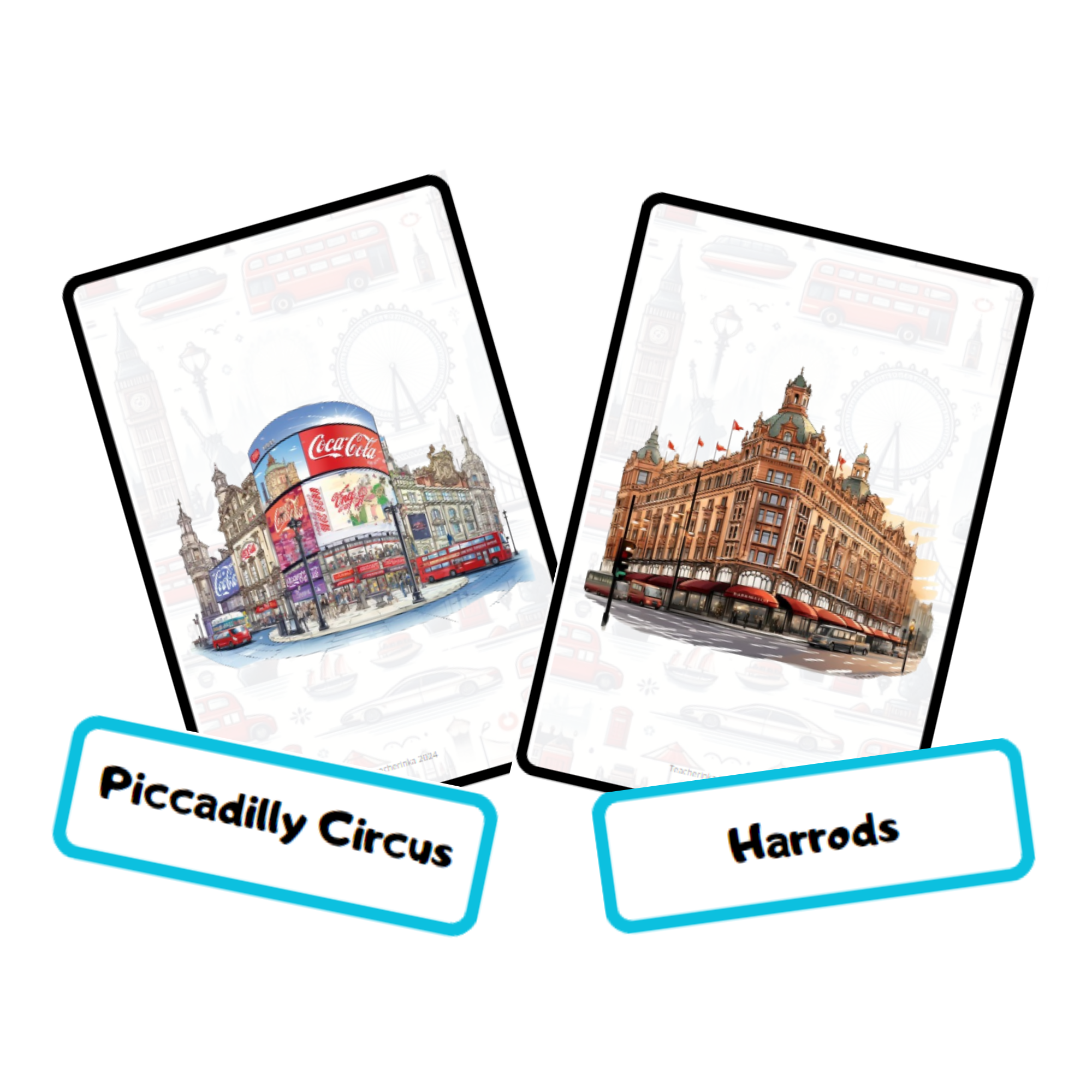 Zestaw Kart Obrazkowych London Landmarks to zestaw do nauki 8 wybranych zabytków i atrakcji Londynu.