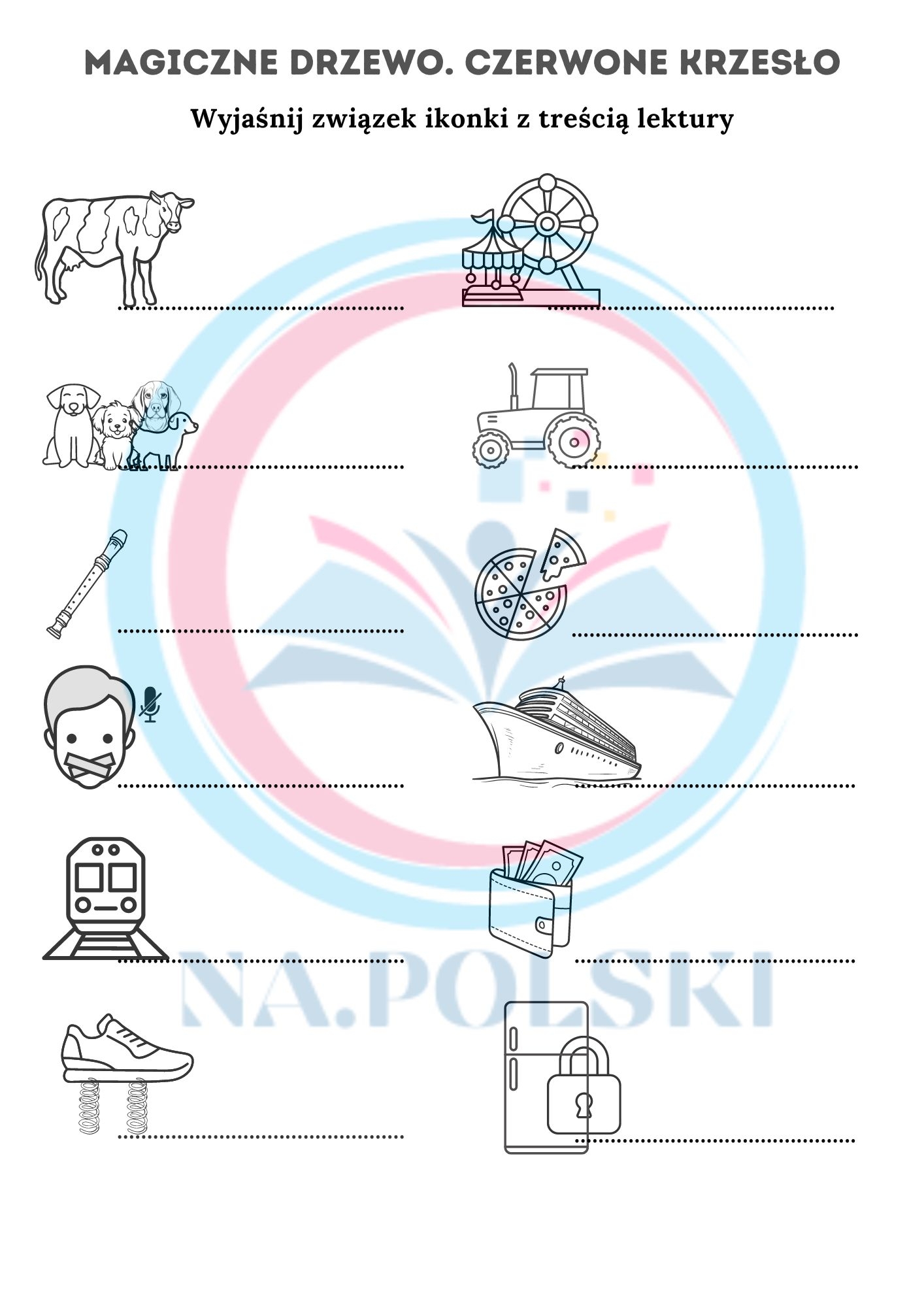Zadaniem uczniów jest wytłumaczenie związku ikonki z treścią lektury. 1 strona PDF brak odpowiedzi
