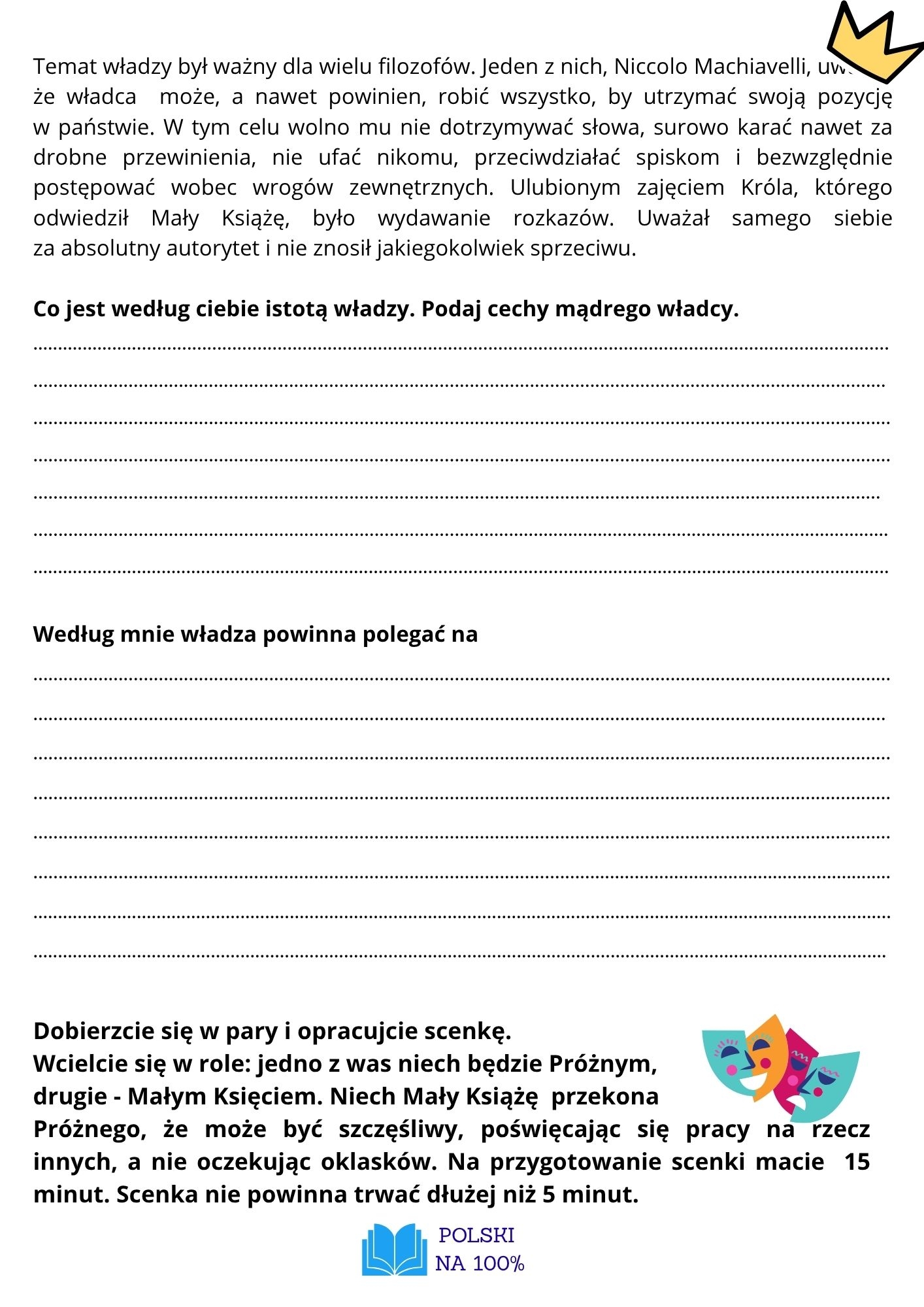 Komplet kart pracy przydatnych podczas omawiania "Małego Księcia" A. de Saint-Exupéry’ego- najważniejsze pojęcia, zadania egzaminacyjne, zadania do pracy indywidualnej lub w grupach, zadania ikonograficzne.