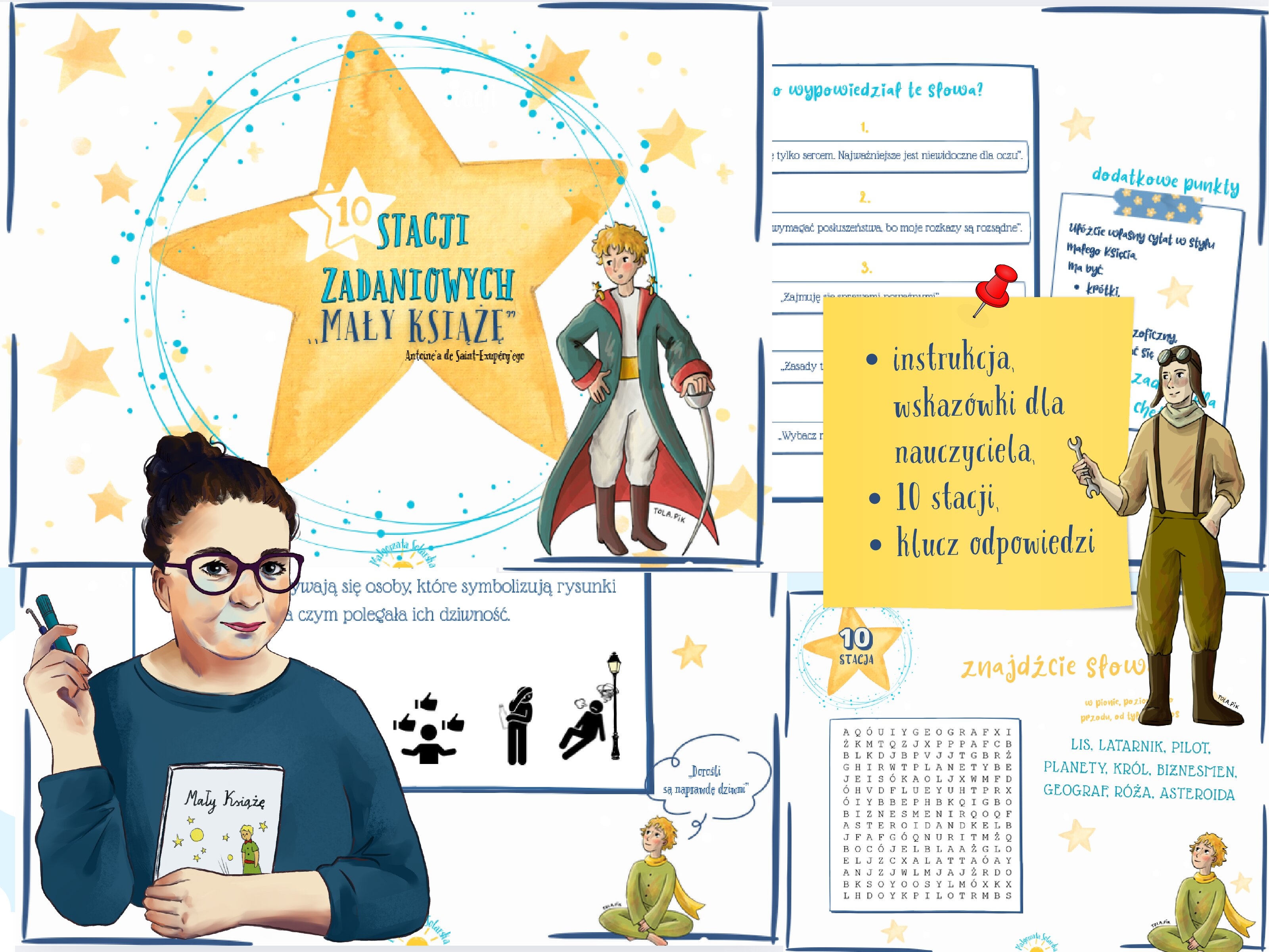 Moja propozycja to dziesięć stacji zadaniowych, które sprawdzą poziom zrozumienia lektury ,,Mały Książę”. Kolejność wykonywanych zadań jest dowolna.