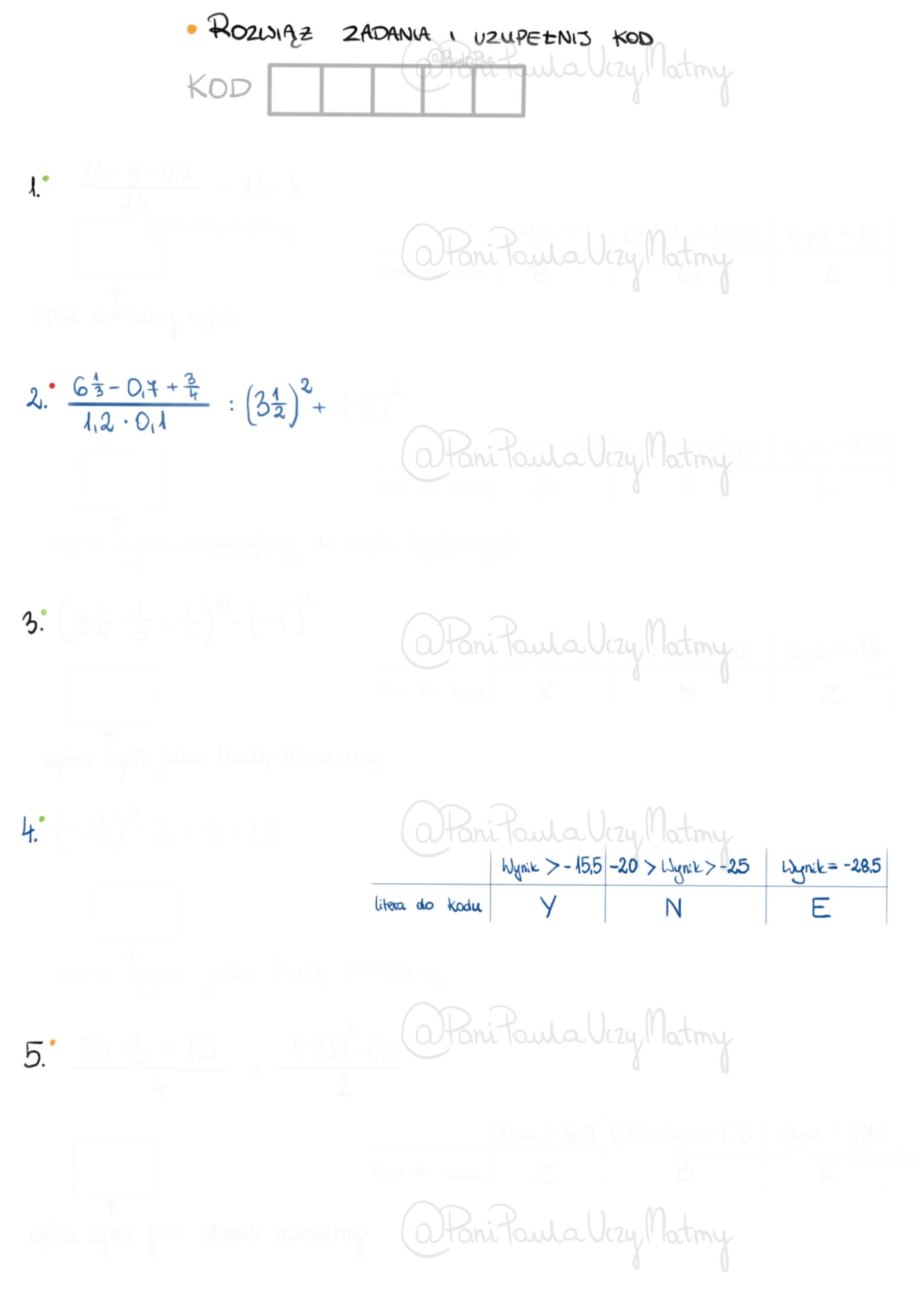 Zanurz swoich uczniów w fascynującą podróż po świecie ułamków i potęg z tą wyjątkową kartą edukacyjną, którą osobiście stworzyłam, aby rozwijać ich umiejętności matematyczne i przygotowywać do większych wyzwań! Moja ręcznie napisana karta to więcej niż zwykłe zadania – to pełne zaangażowanie, złożone operacje i odkrywanie kodu, które sprawią, że matematyka stanie się prawdziwą przygodą.