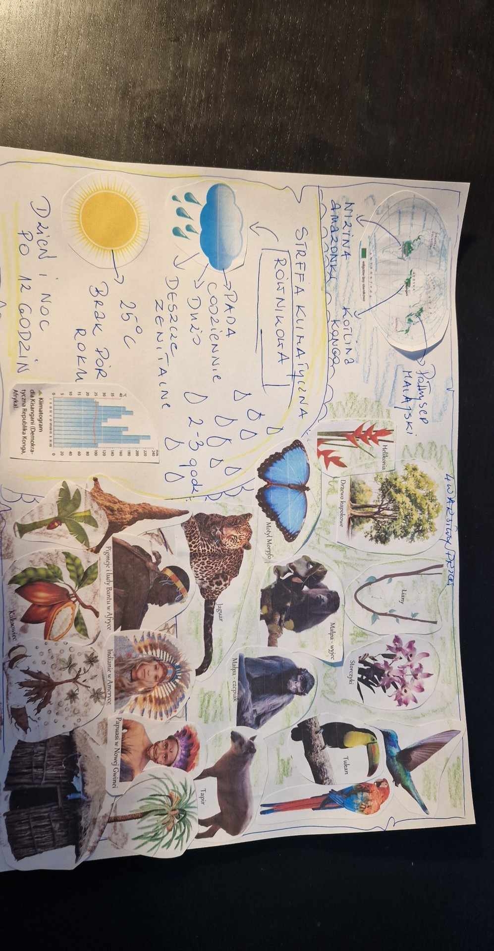 Kupując materiał otrzymasz to co jest przedstawione na zdjęciu w formacie pdf – niestety bez map i klimatogramów, bo w darmowych grafikach takich nie ma. Można sobie wkleić i wydrukować z internetu lub multibooka.