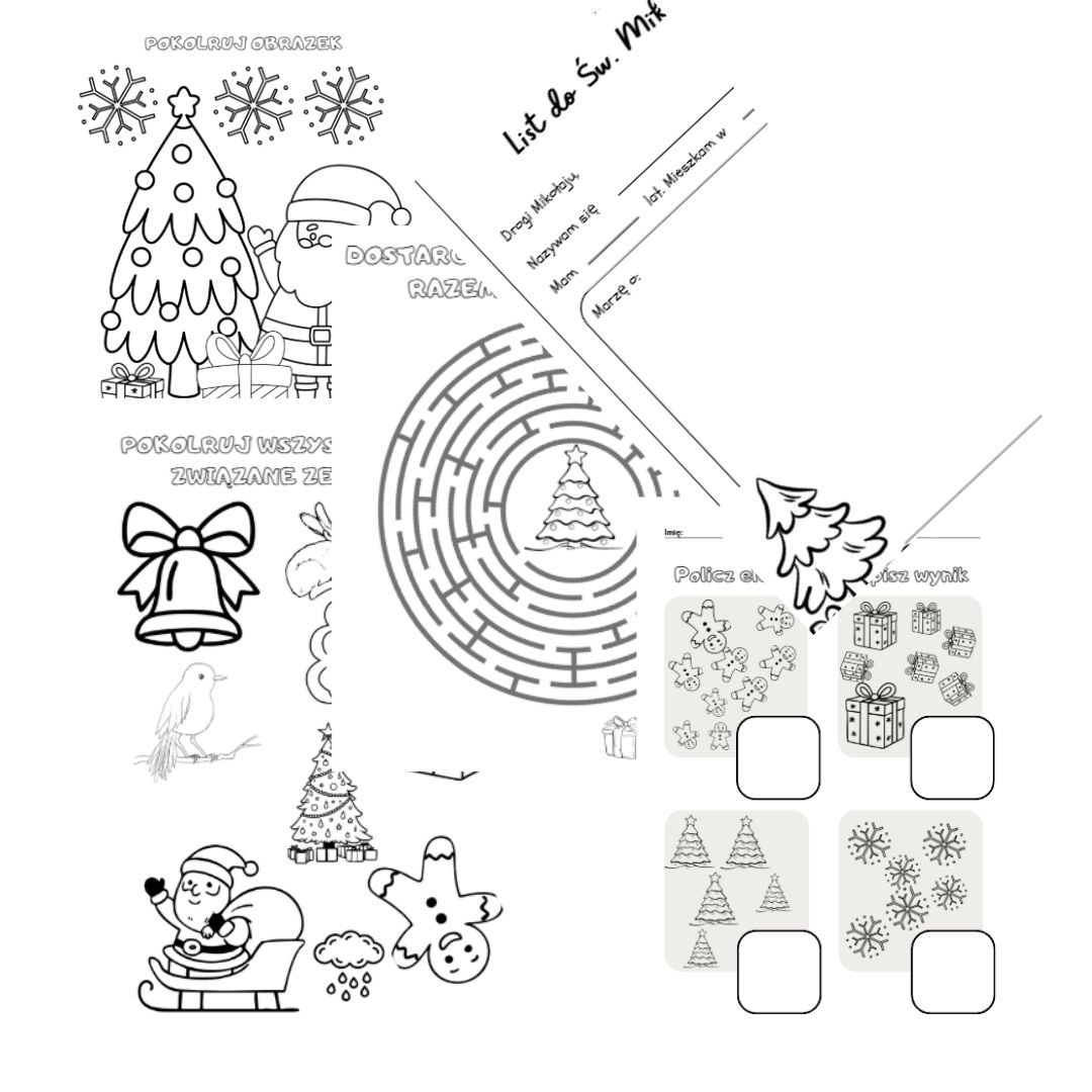 Karty pracy: kolorowanka, labirynt, policz elementy, list , oddawanie i odejmowanie.