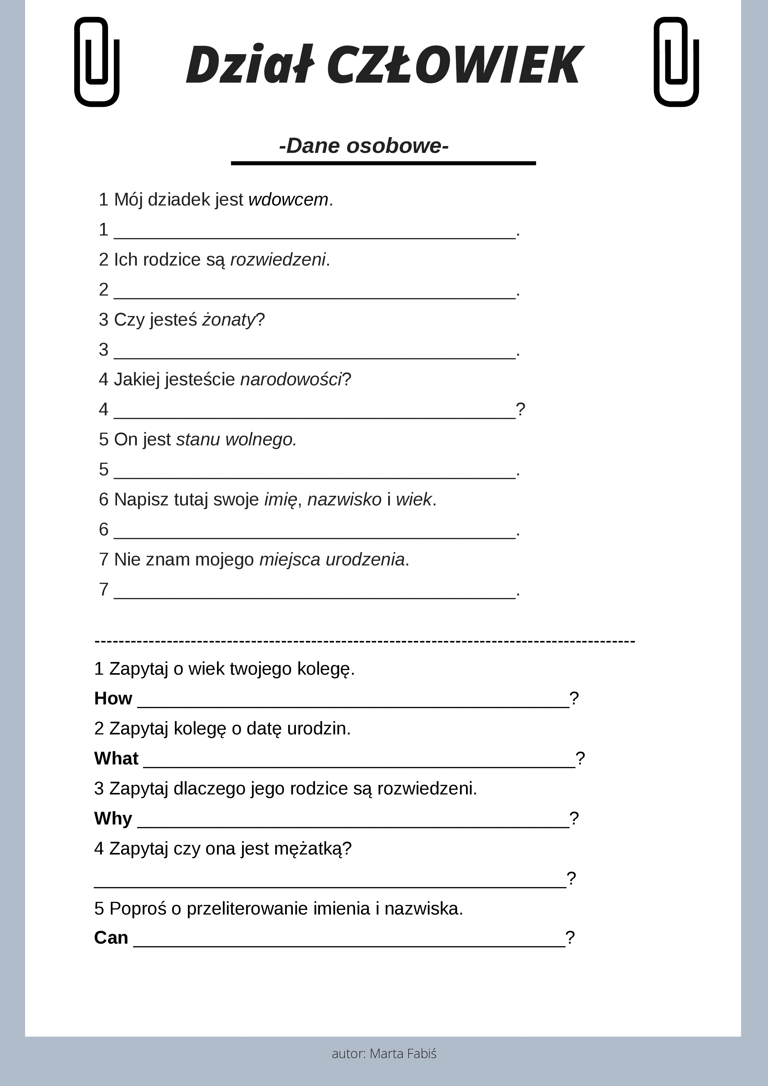 Przygotowałam 12 stron materiałów ćwiczeniowych w oparciu o Repetytorium Pearson - dział 1. Można podzielić materiał na osobne sekcje i np. ćwiczyć słownictwo stopniowo, co powoduje, że uczniowie uczą się mniejszej partii słówek i mają potem możliwość ich utrwalenia. Dołączyłam też opis kilku ćwiczeń dodatkowych do wykorzystania w klasie m.in. w ramach rozgrzewki. Enjoy!