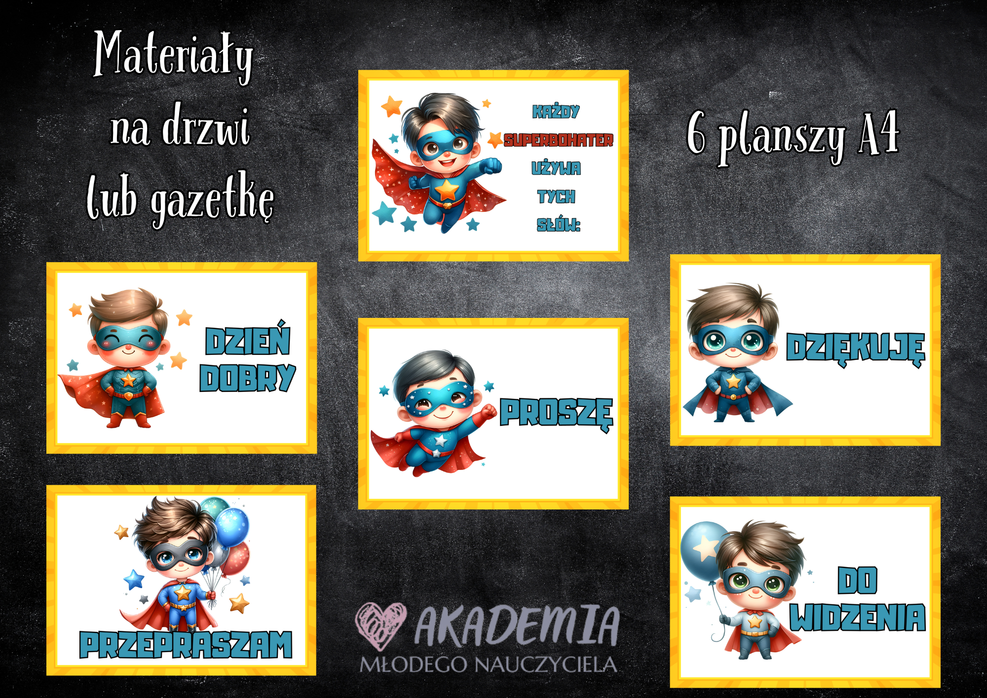 - 6 planszy w fomacie .pdf, w rozmiarze A4 - w ustawieniach drukowania drukarki można wybrać odpowiedni rozmiar - wydrukować również mniejsze lub większe formaty